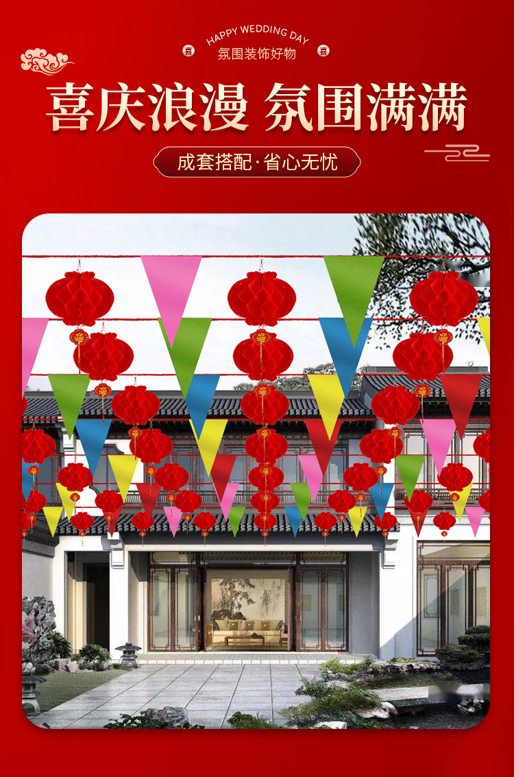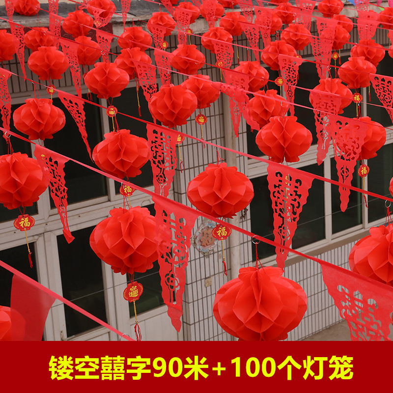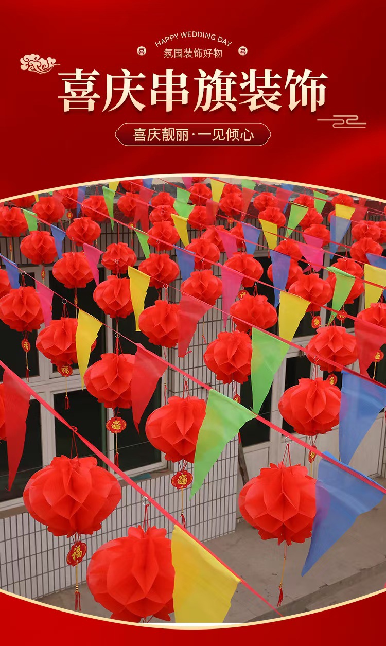 • [대형-빨간색 밧줄-囍 깃발 90m +100 등불]