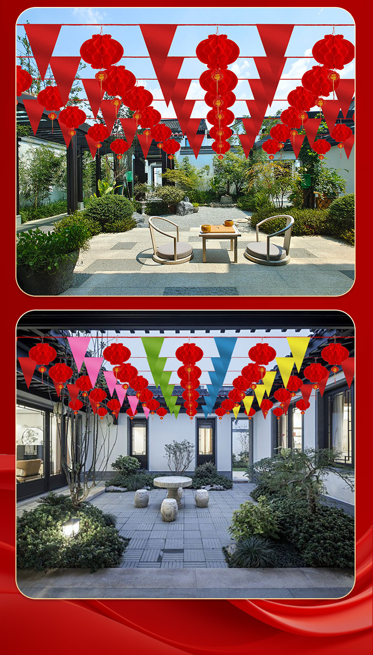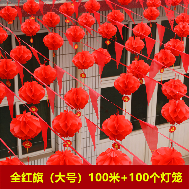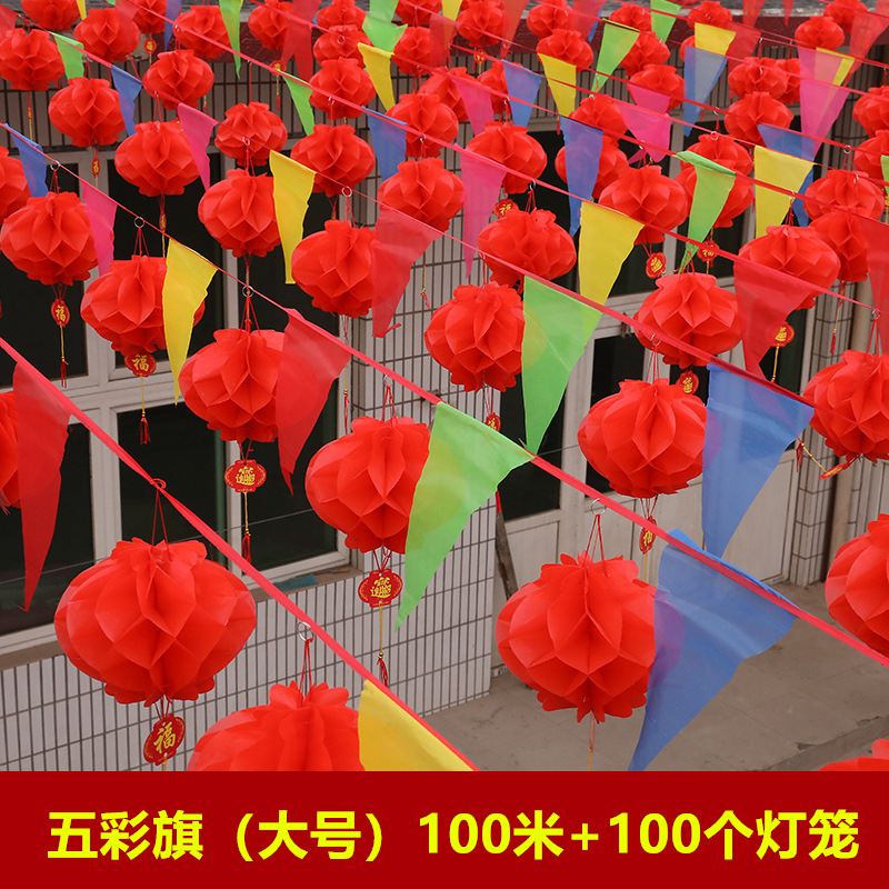 • [대형-빨간색 밧줄-다채로운 깃발 100m +100 등불]