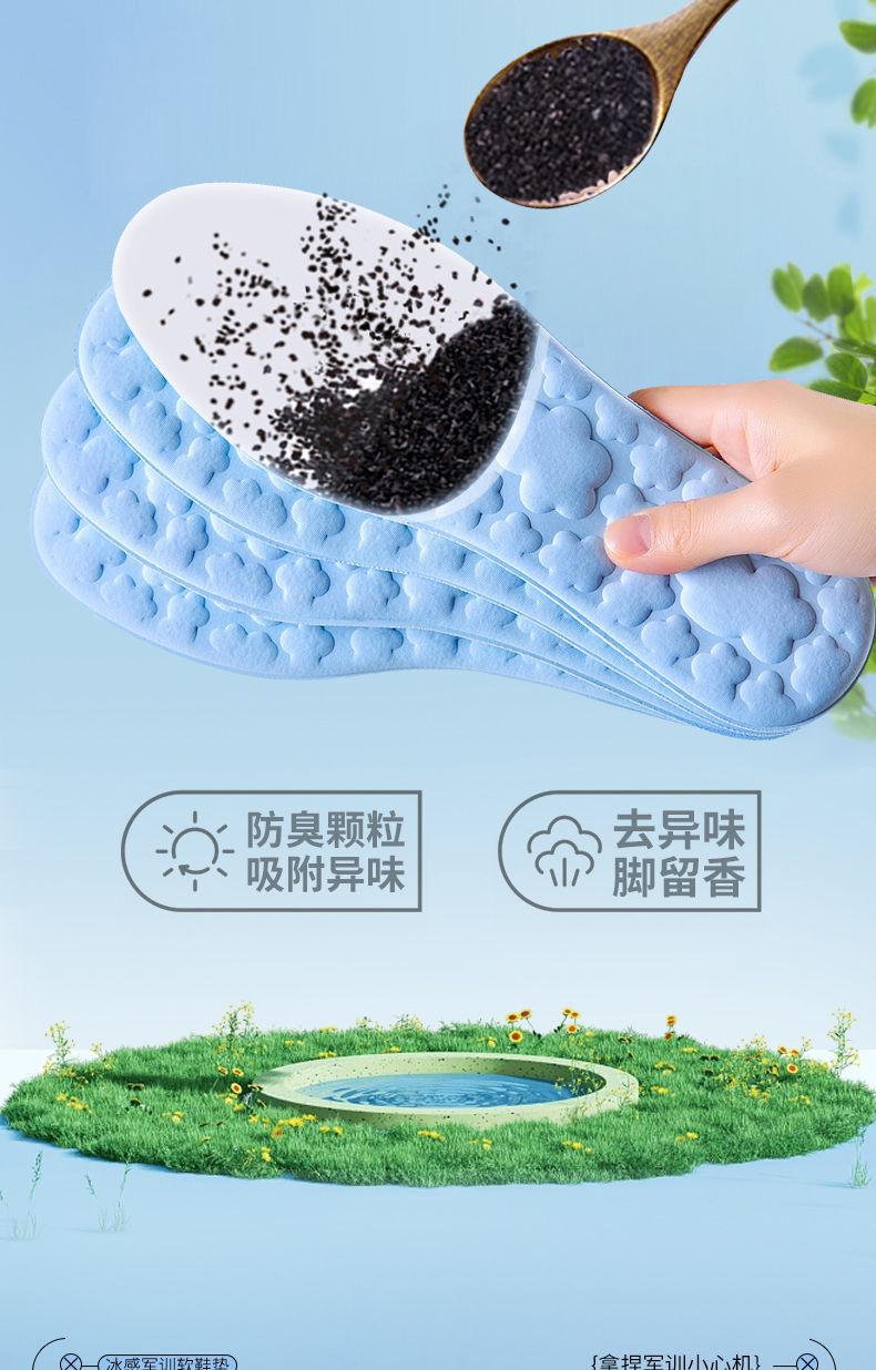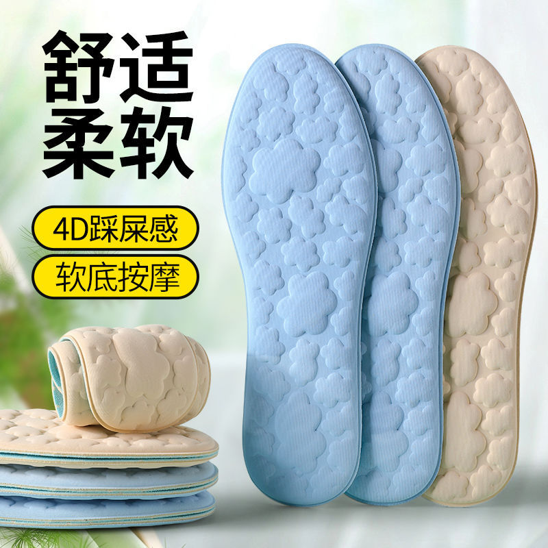 4d 느낌 남성과 여성을위한 슈퍼 소프트 클라우드 안창 땀 흡수성 탈취제 통기성 연약한 바닥 통증 방지 마사지 지우 스테이션 나인 벨벳