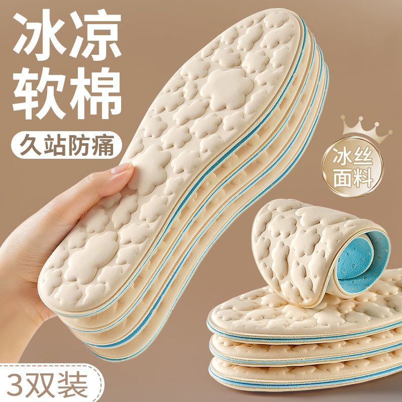 4d 느낌 남성과 여성을위한 슈퍼 소프트 클라우드 안창 땀 흡수성 탈취제 통기성 연약한 바닥 통증 방지 마사지 지우 스테이션 나인 벨벳스토어 가기