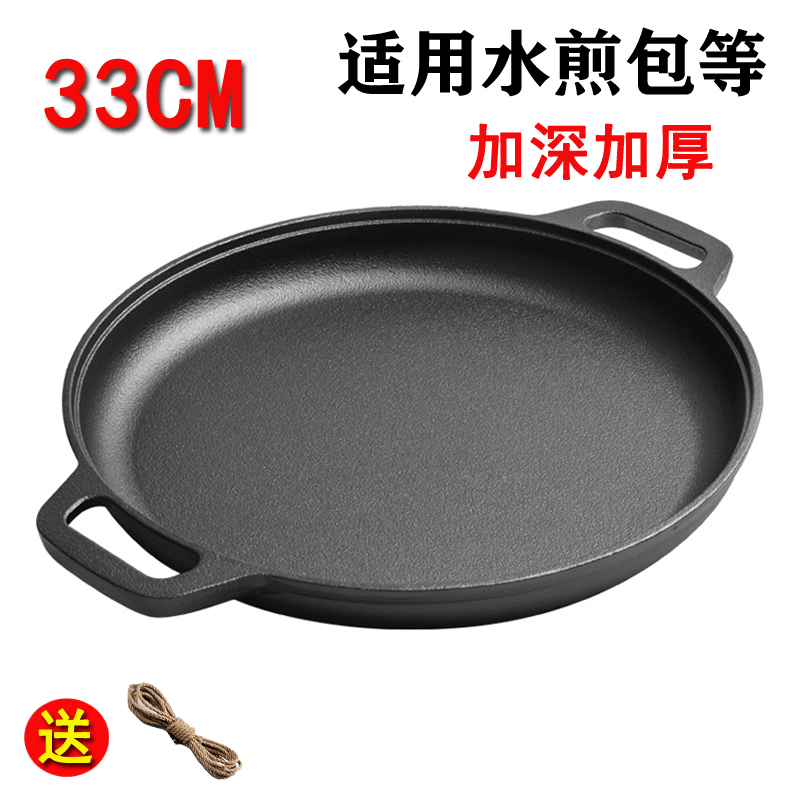 두꺼운 팬케이크 팬 더블 이어 캐스트 아이언 팬 코팅되지 않은 그리드 핸드 헬드 팬케이크 애완 동물 아이언 가정용 팬케이크 팬 Not Nine Velvet스토어 가기