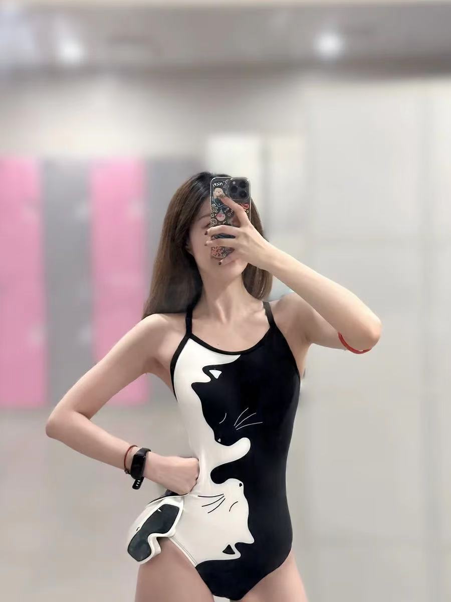 수영복 여성 온천 바디 트라이앵글 섹시 백리스 스트랩 흑백 고양이 경쟁 훈련 슬리밍 보수 레이싱 수영복스토어 가기