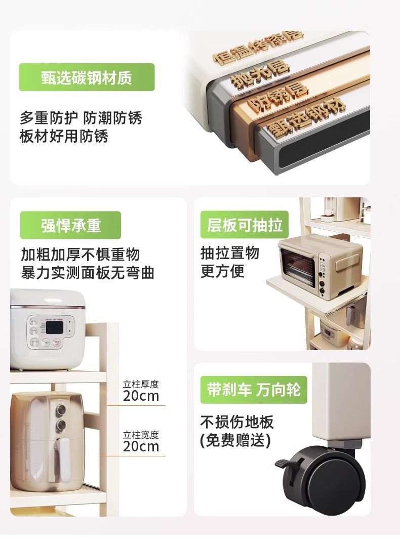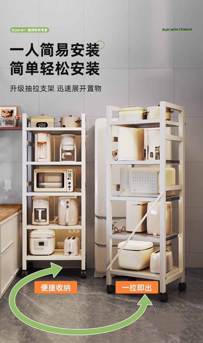풀 아웃 스토리지 랙 주방 바닥 스탠딩 다층 샌드위치 스토리지 랙 가정용 오븐 전자 레인지 다기능 스토리지 랙
