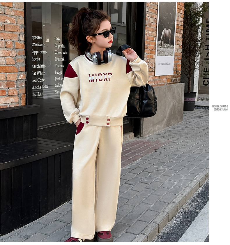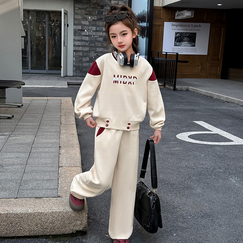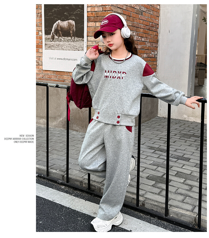 패션 캐주얼 스포츠웨어 세트 여성의 2025 새로운 도착 우아한 나이 감소 스웨트 2 피스 세트 자수 편지 세트