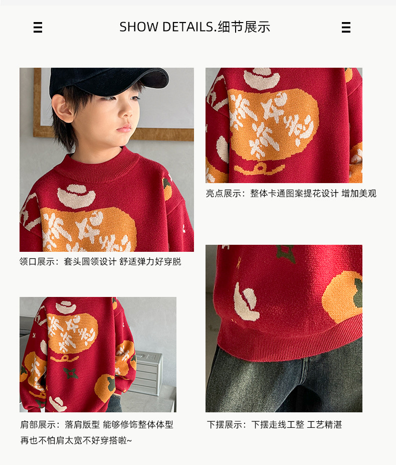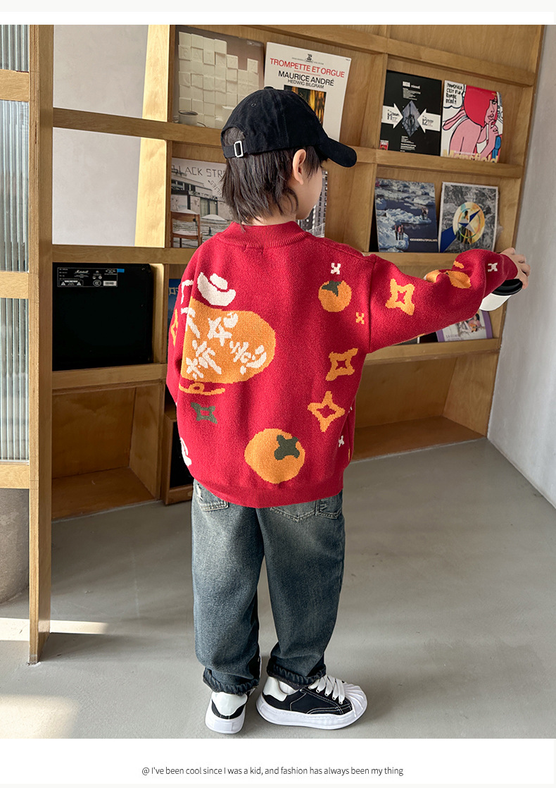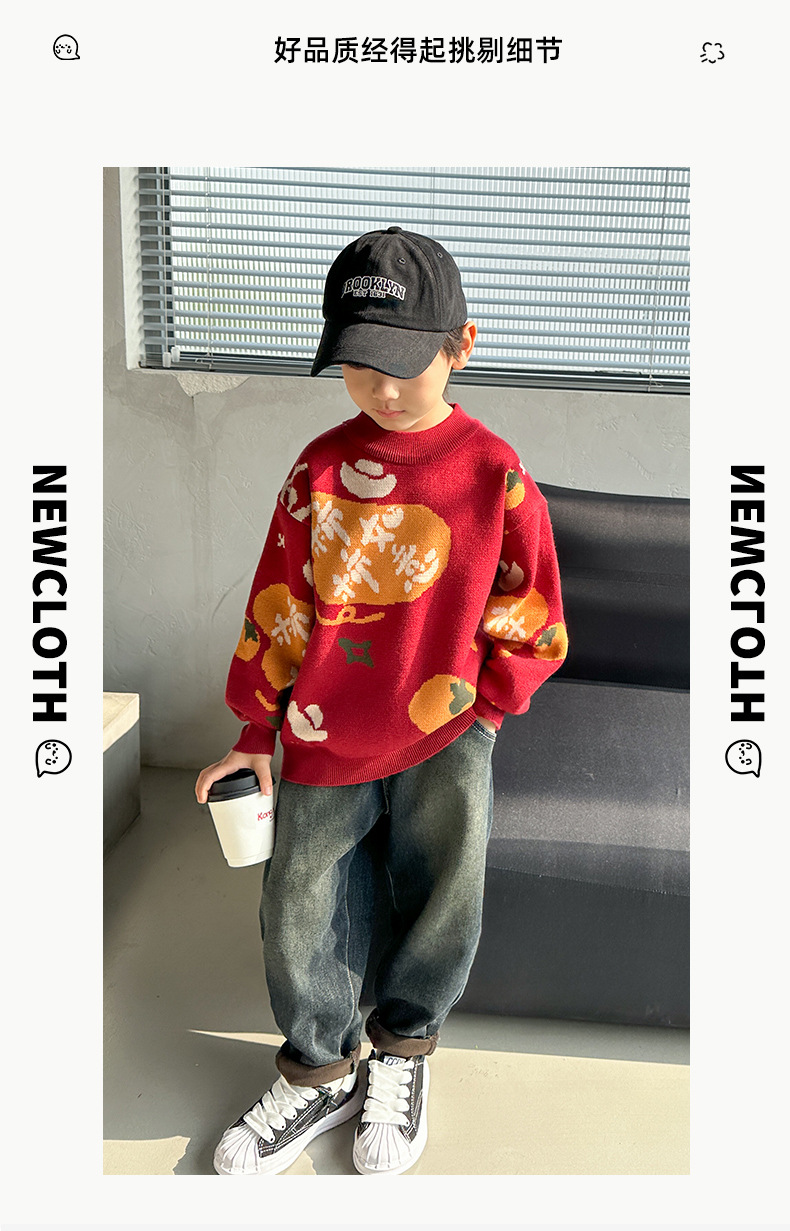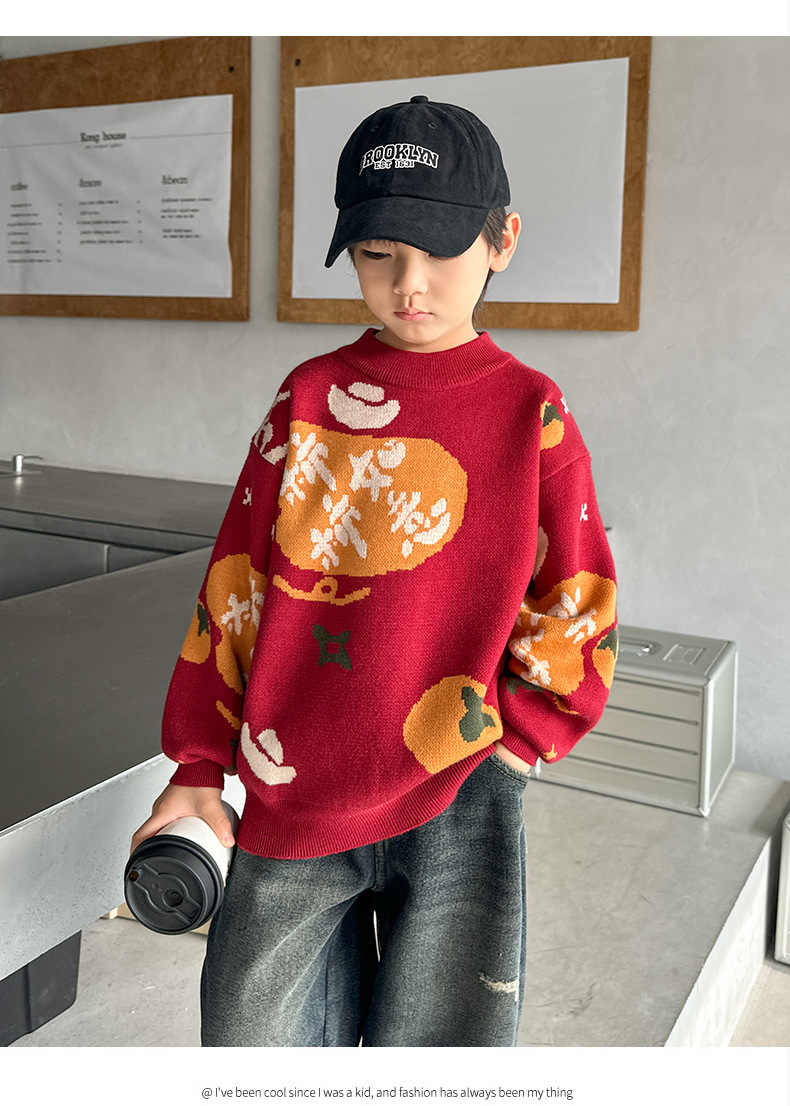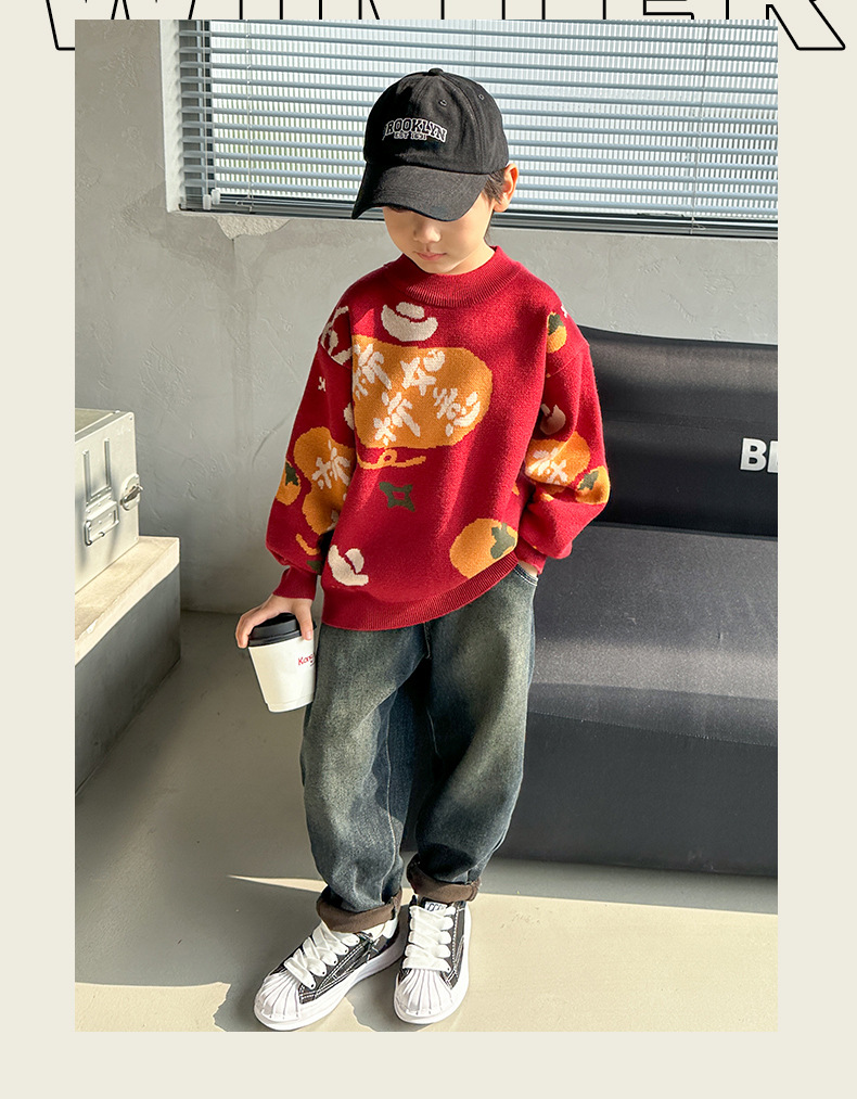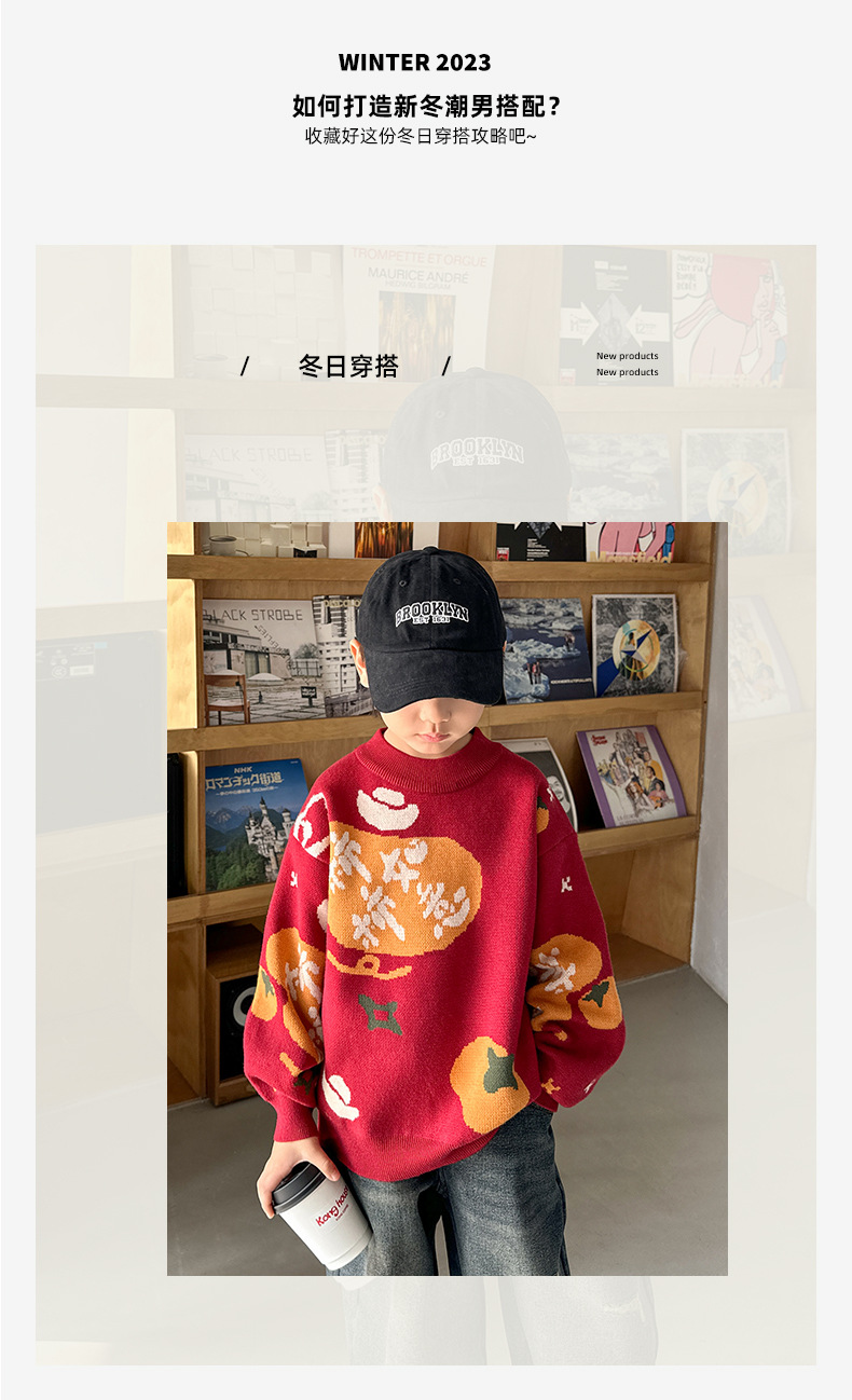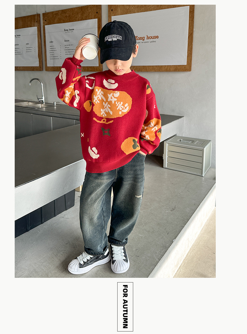 소년의 가을과 겨울 새로운 패션 캐주얼 크루 넥 스웨터 축제 중국 스타일 연합 스웨터스토어 가기