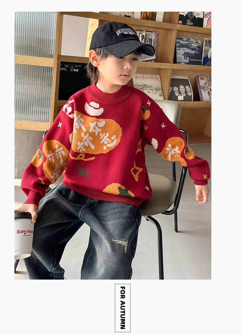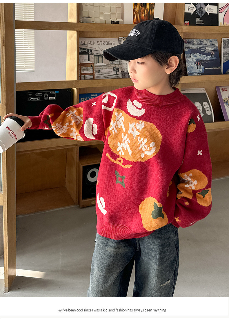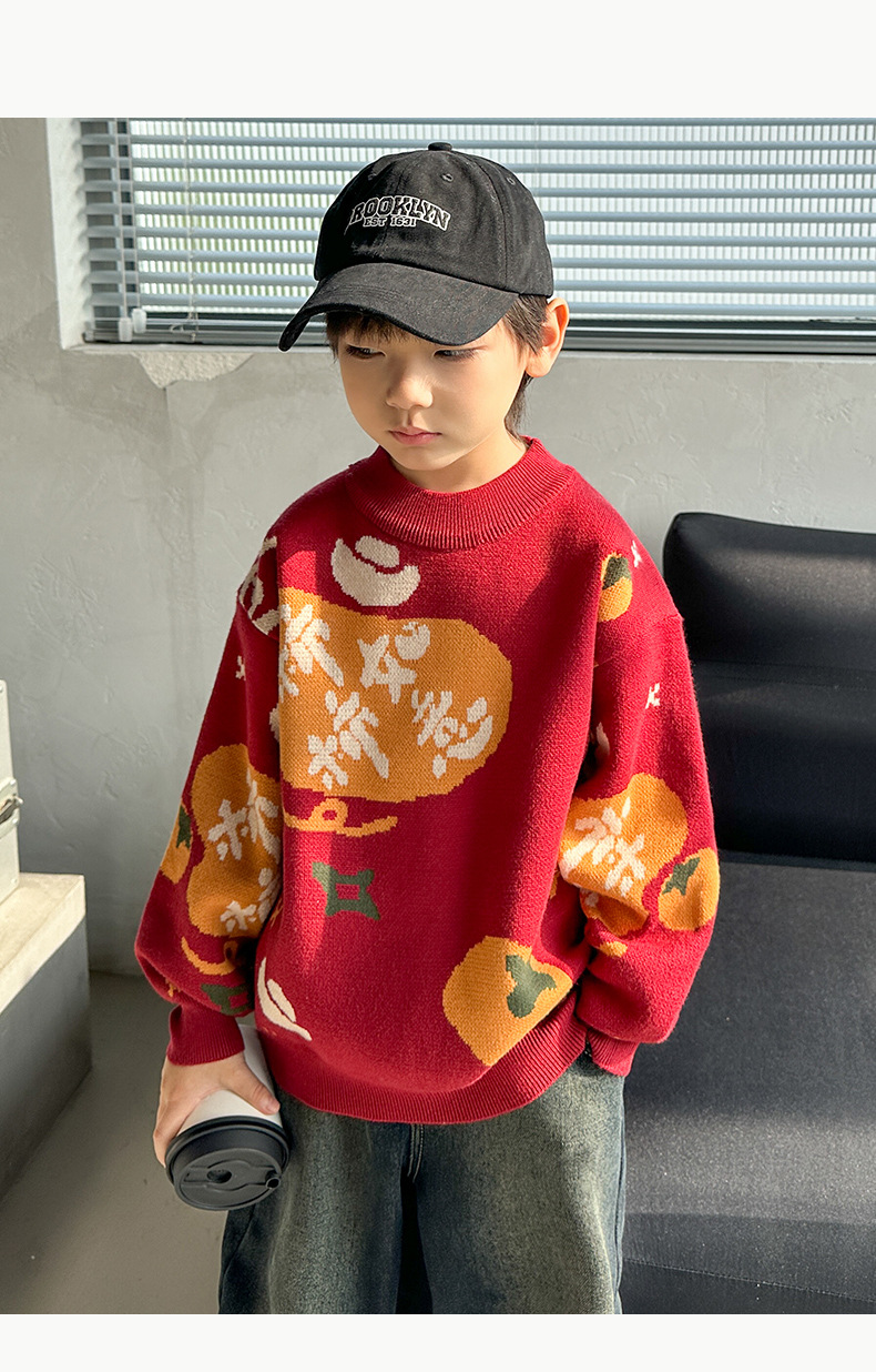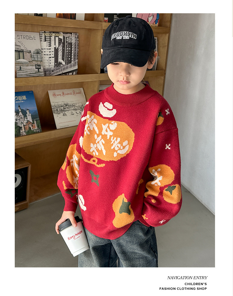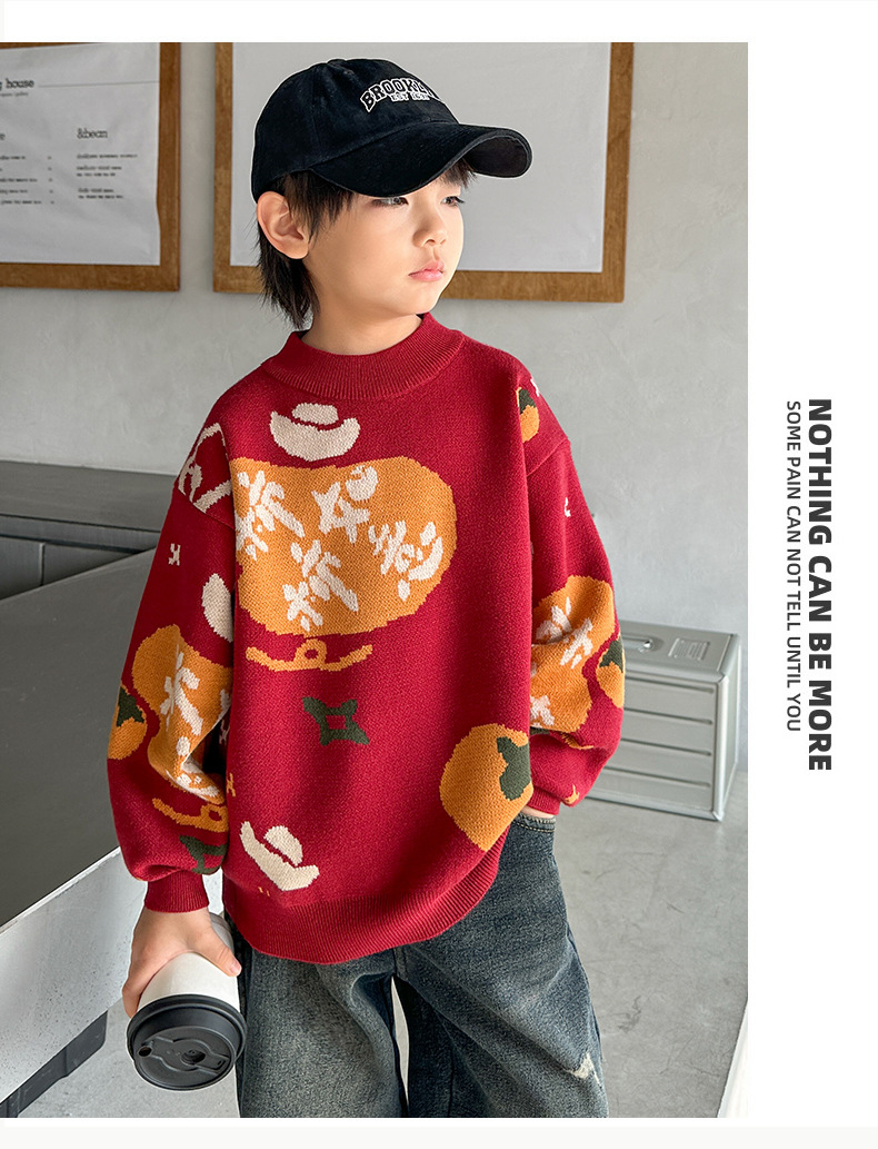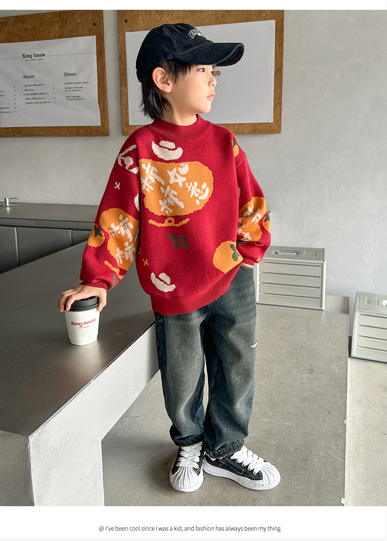 소년의 가을과 겨울 새로운 패션 캐주얼 크루 넥 스웨터 축제 중국 스타일 연합 스웨터