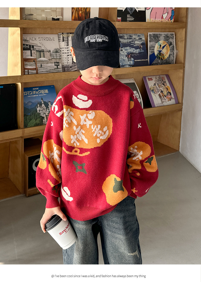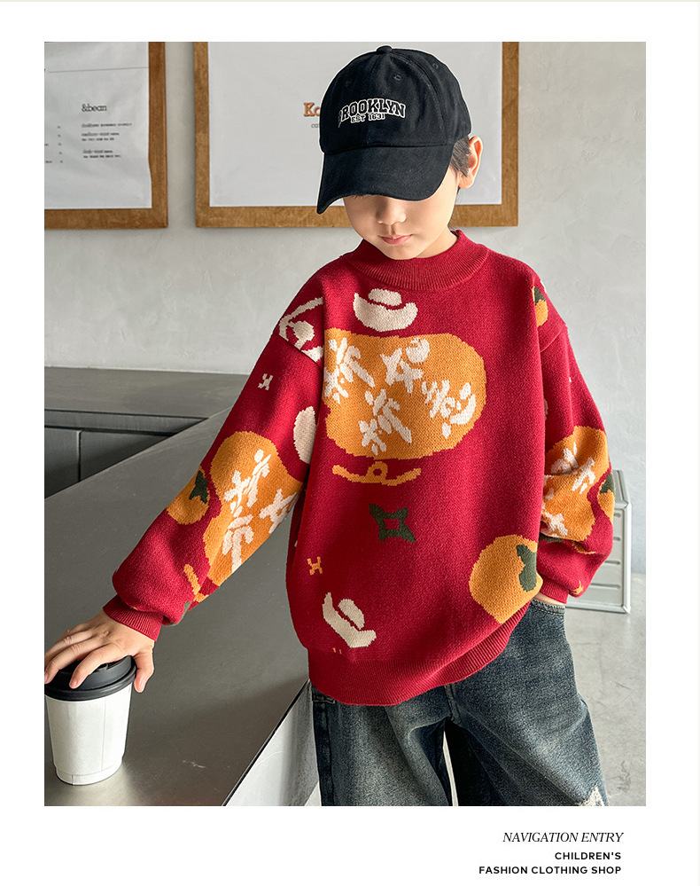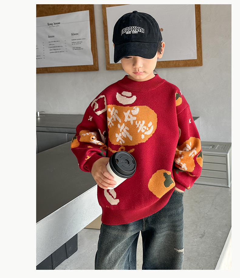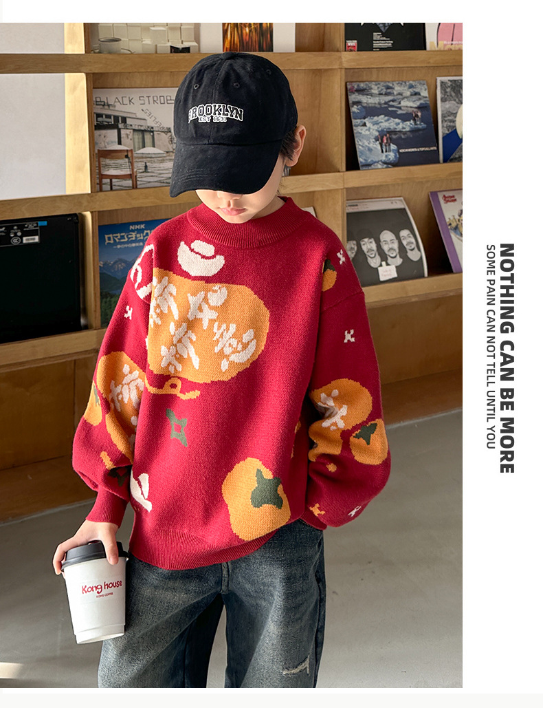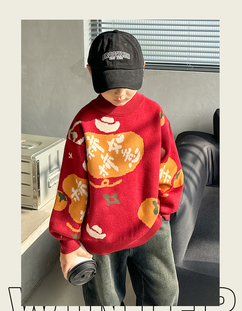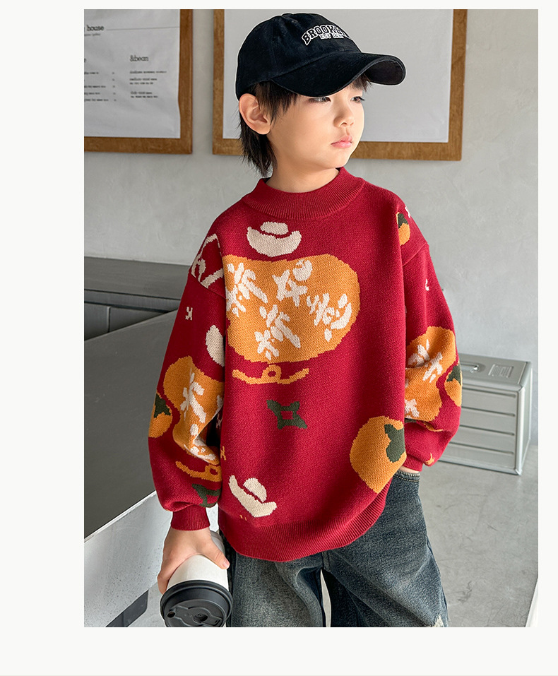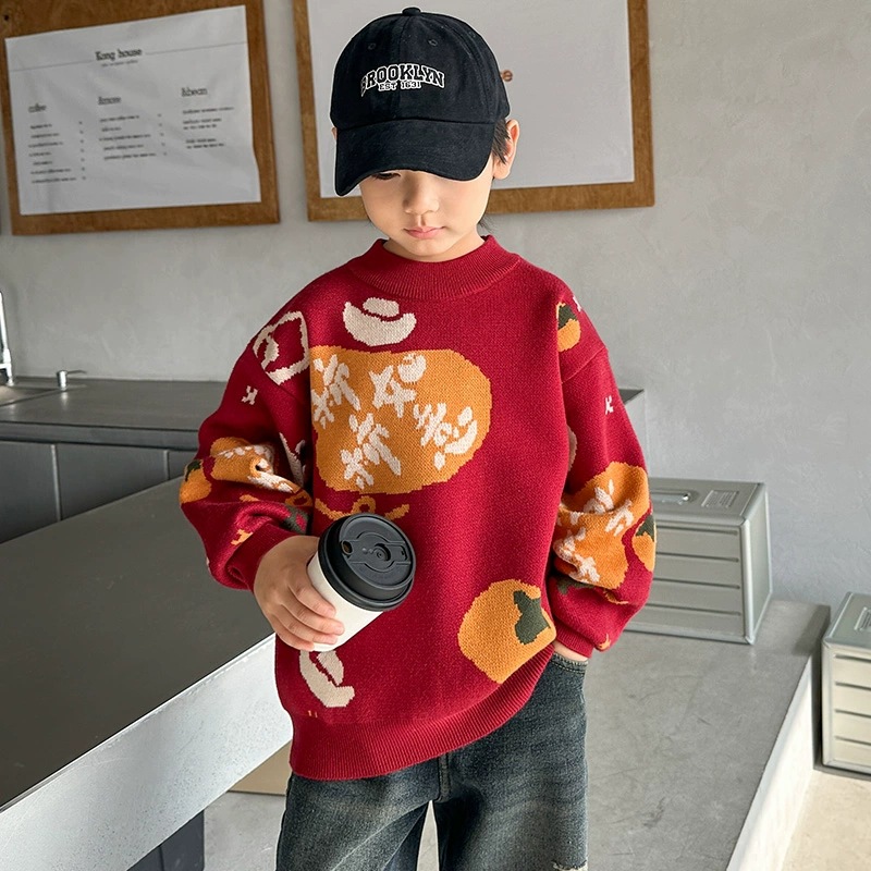 소년의 가을과 겨울 새로운 패션 캐주얼 크루 넥 스웨터 축제 중국 스타일 연합 스웨터