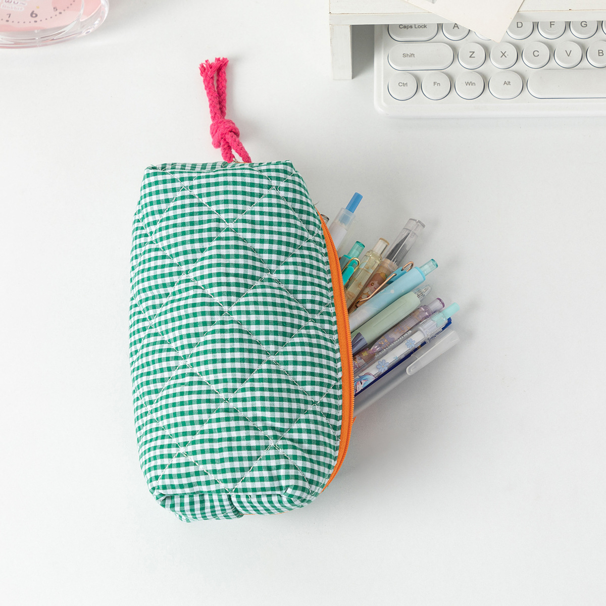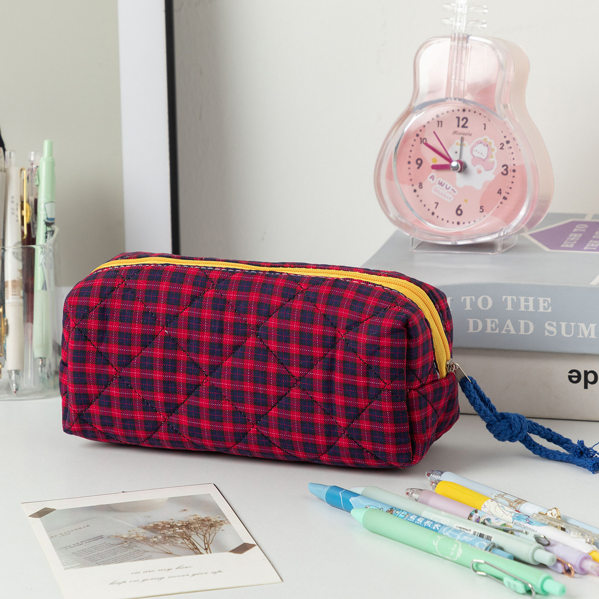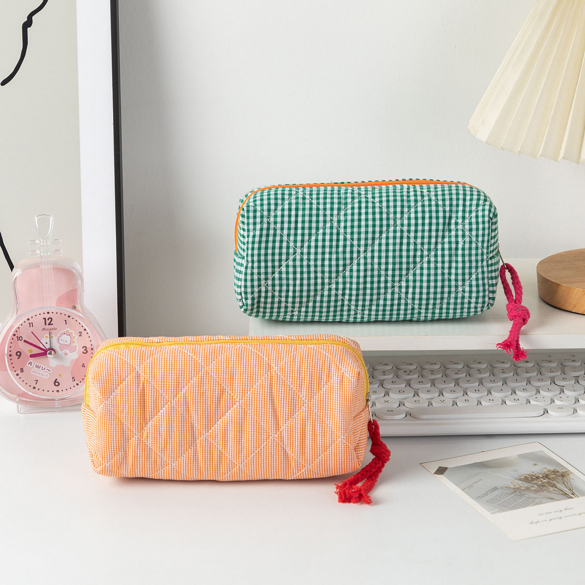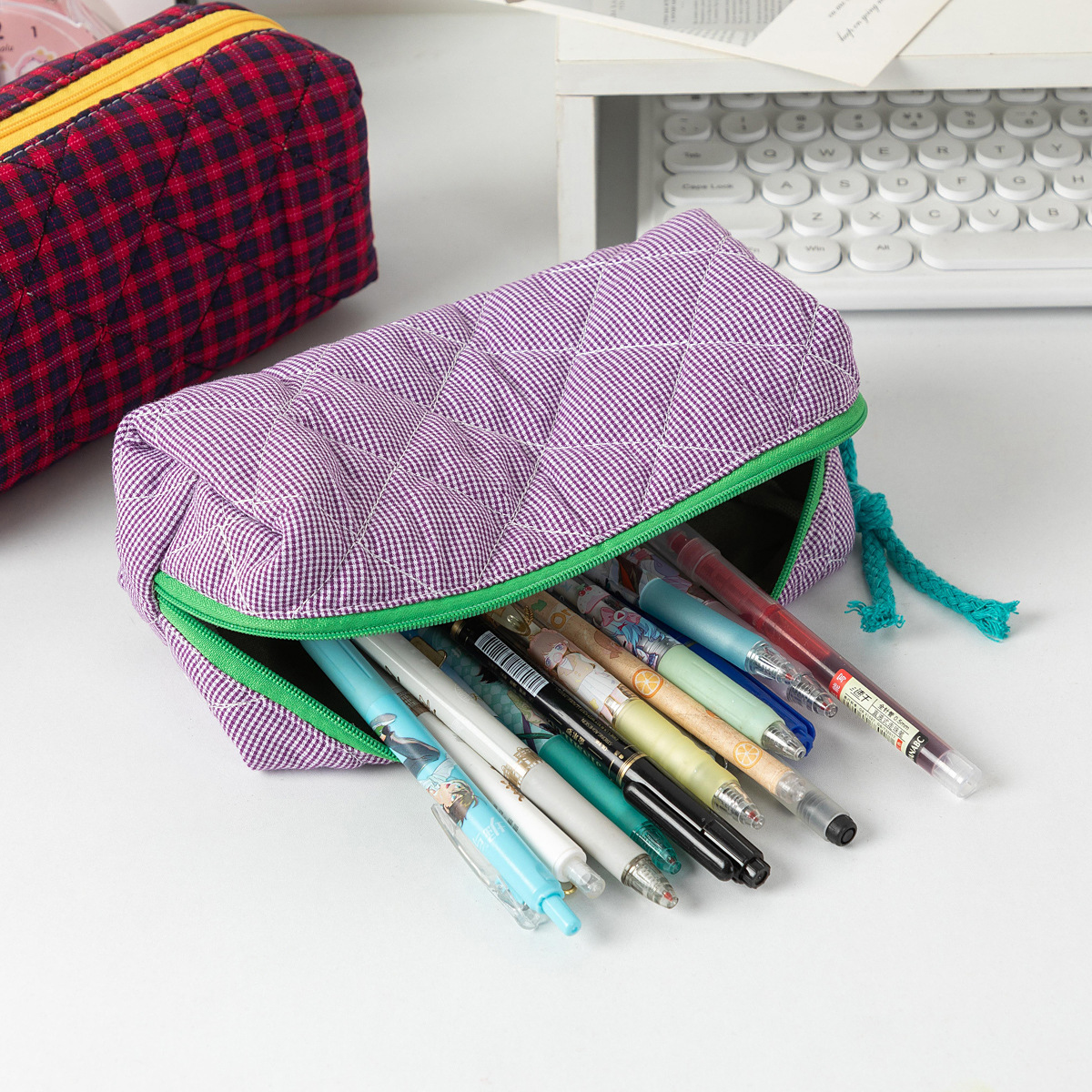 대용량 대비 컬러 격자 무늬 학생 연필 케이스 Ins 스타일 휴대용 화장품 보관 가방 스킨 케어 데스크탑 보관 가방스토어 가기