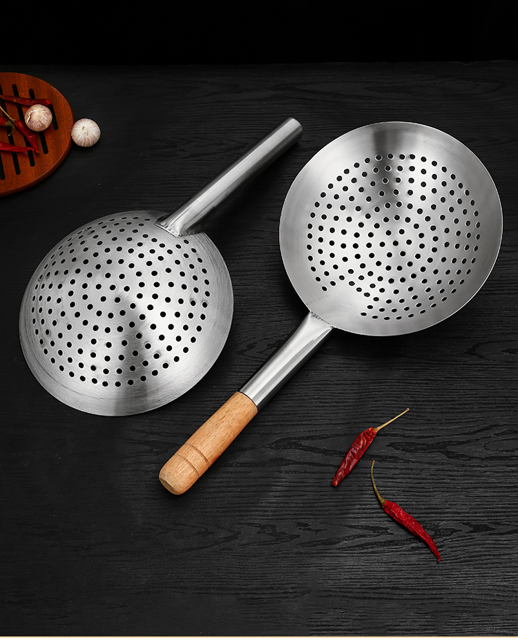 두꺼운 스테인레스 스틸 색조 가정용 주방 튀긴 대형 생선 국수 여과 된 숟가락 상업용 초대형 누출 나인 벨벳