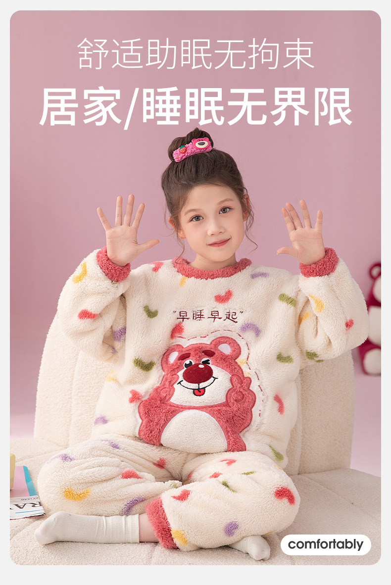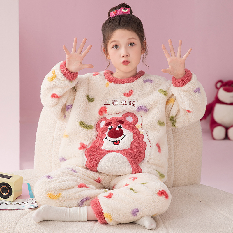 어린이 잠옷 소녀의 2024 새로운 가을과 겨울 산호 양털 큰 어린이 두꺼운 기모 스타일러스 소녀의 집 옷스토어 가기