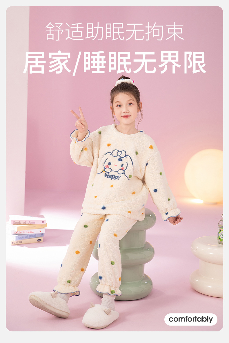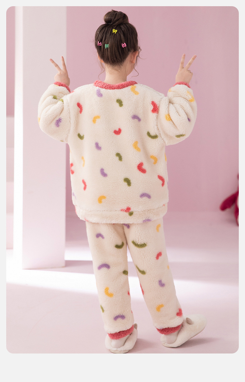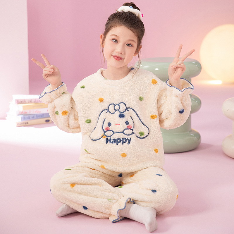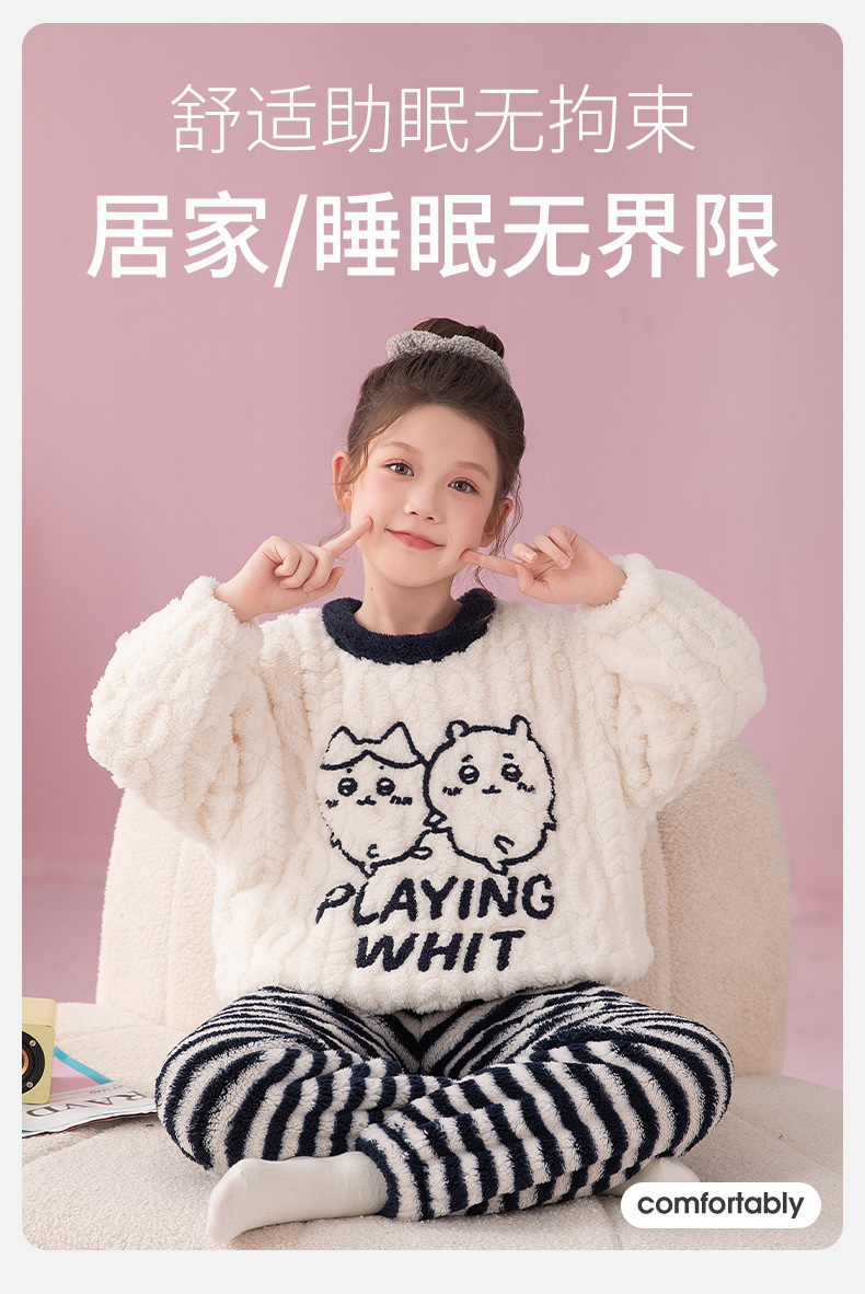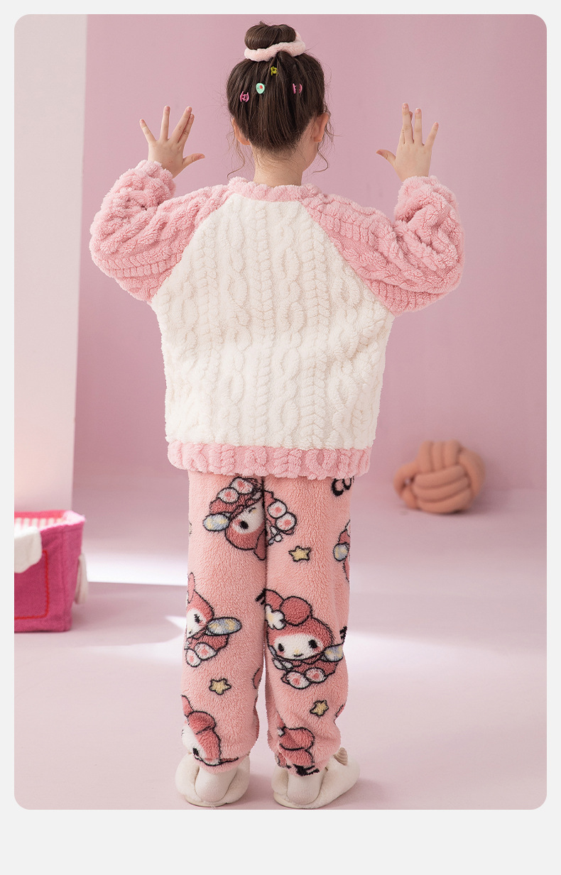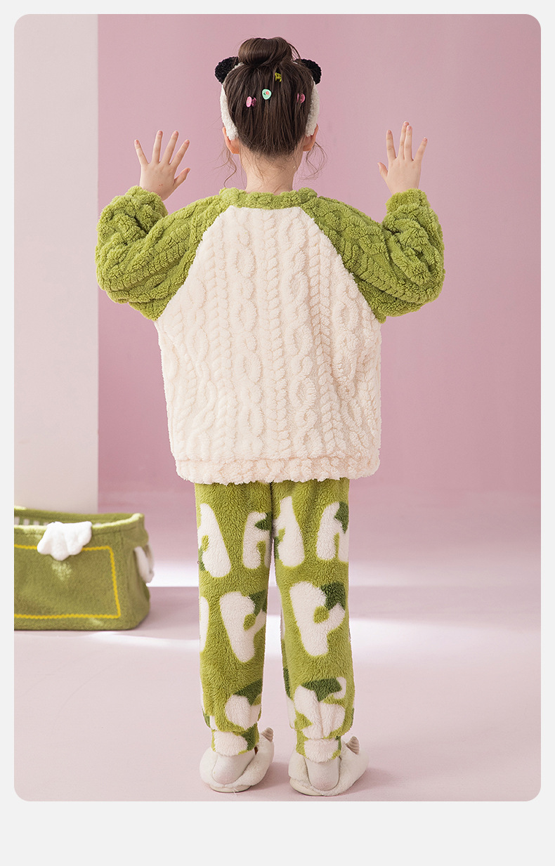 어린이 잠옷 소녀의 2024 새로운 가을과 겨울 산호 양털 큰 어린이 두꺼운 기모 스타일러스 소녀의 집 옷