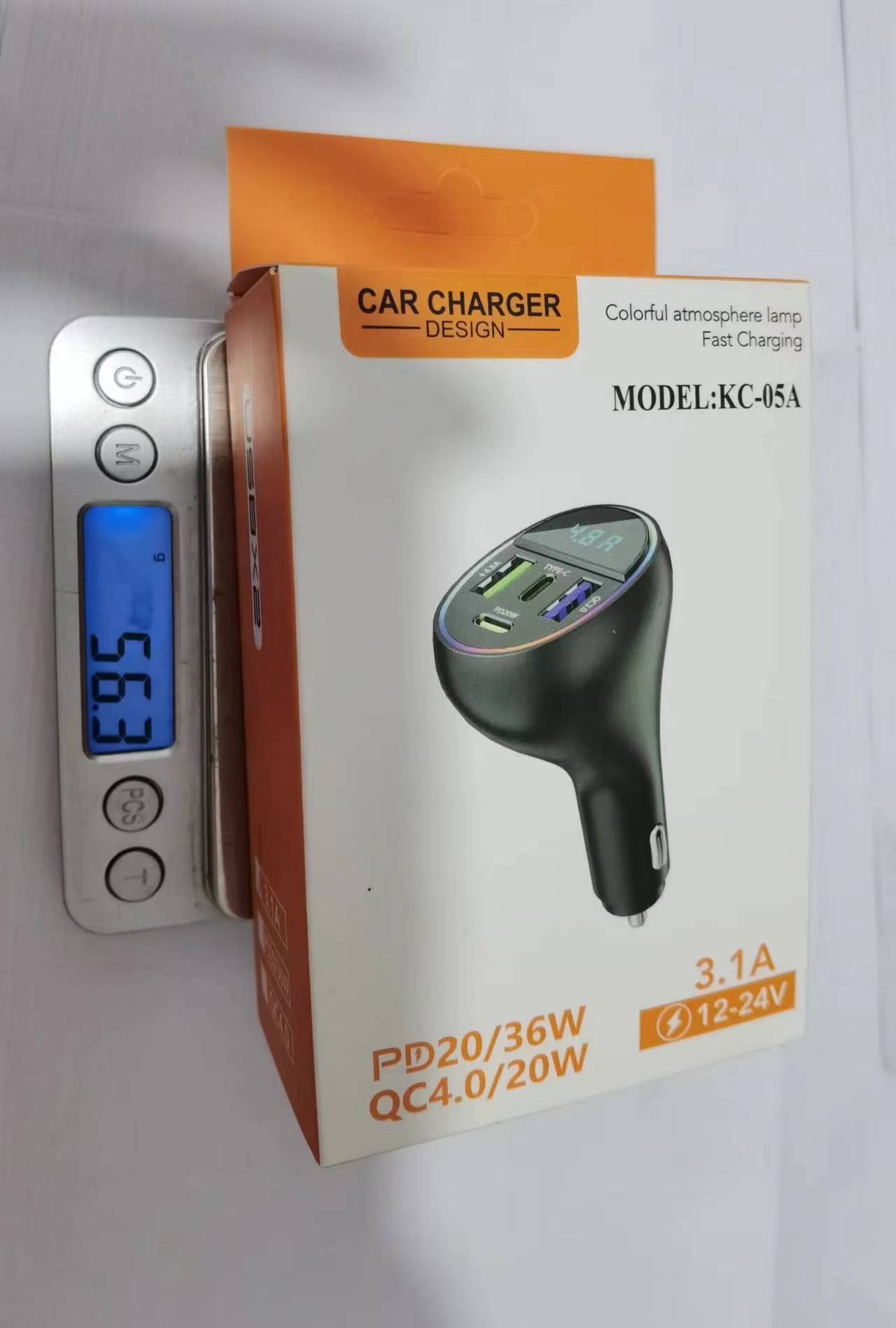 Kc-05A 자동차 MP3 플레이어 블루투스 송신기 자동차 36WPD 빠른 충전기 자동차 충전기 분위기 국경스토어 가기