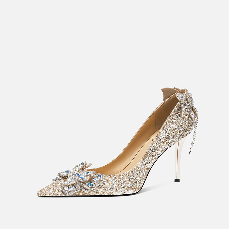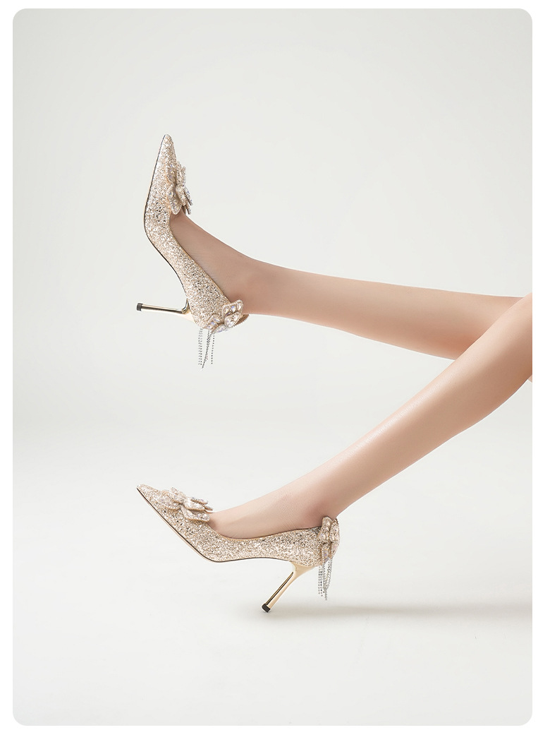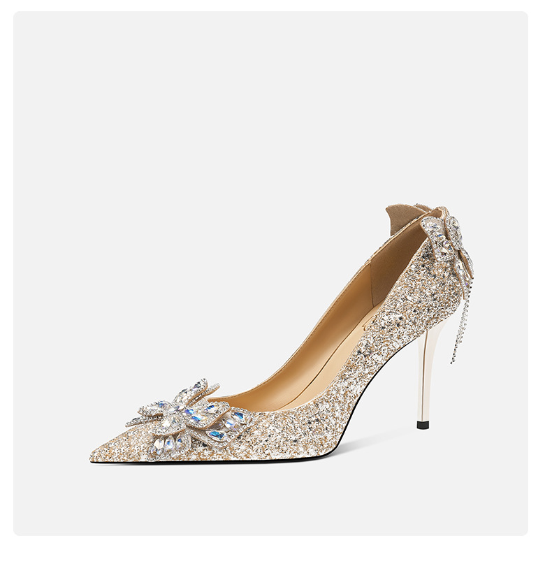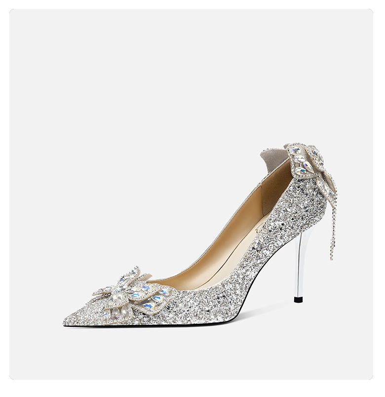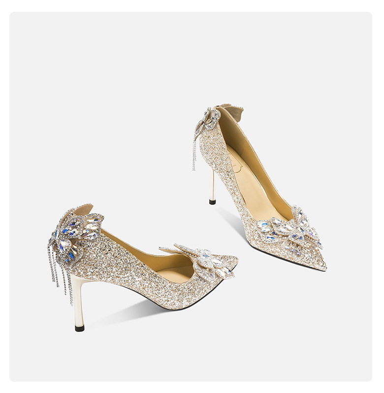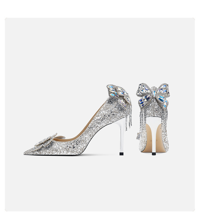 708-B21 프랑스 더블 레이어 나비 라인스톤 타셀 여성 신발 우아한 하이힐 신부 웨딩 메인 원사 하이힐스토어 가기