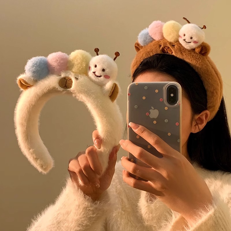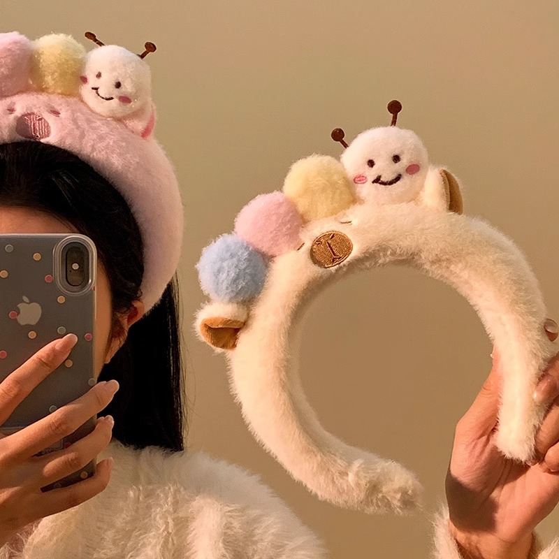 귀여운 애벌레 봉제 헤어 후프 여성 특수 만화 헤어 후프 워시 페이스 메이크업 헤어 액세서리 가을 및 겨울 헤어 클립