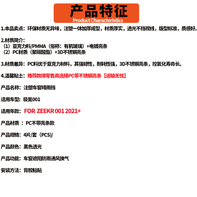 특수 극 크립톤 001 창 방비 및 비 방패 ZEEKR 001PC 주입 밝은 검은 색 새로운 에너지 자동차 방패스토어 가기
