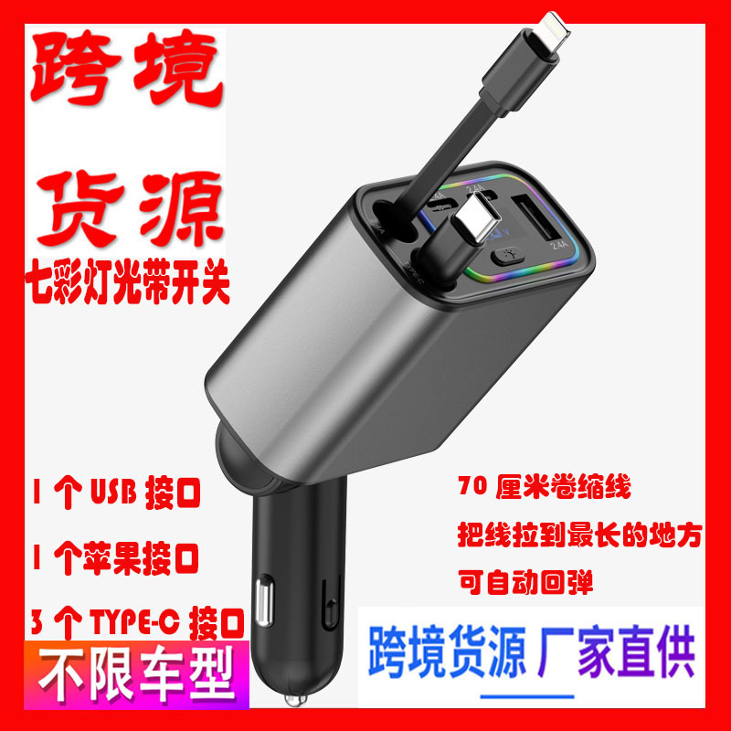 자동차 충전기 텔레스코픽 라인 휴대 전화 슈퍼 빠른 충전 1 드래그 4 자동차 충전기 120W 자동차 PD 빠른 충전스토어 가기