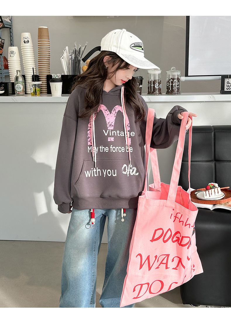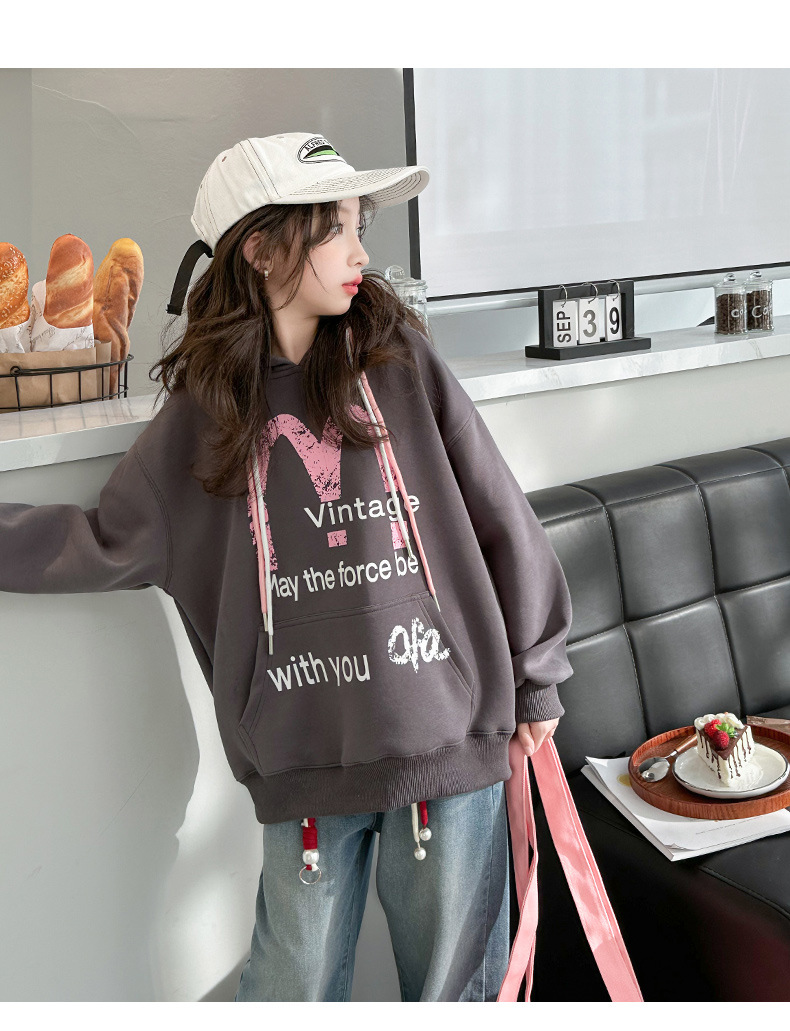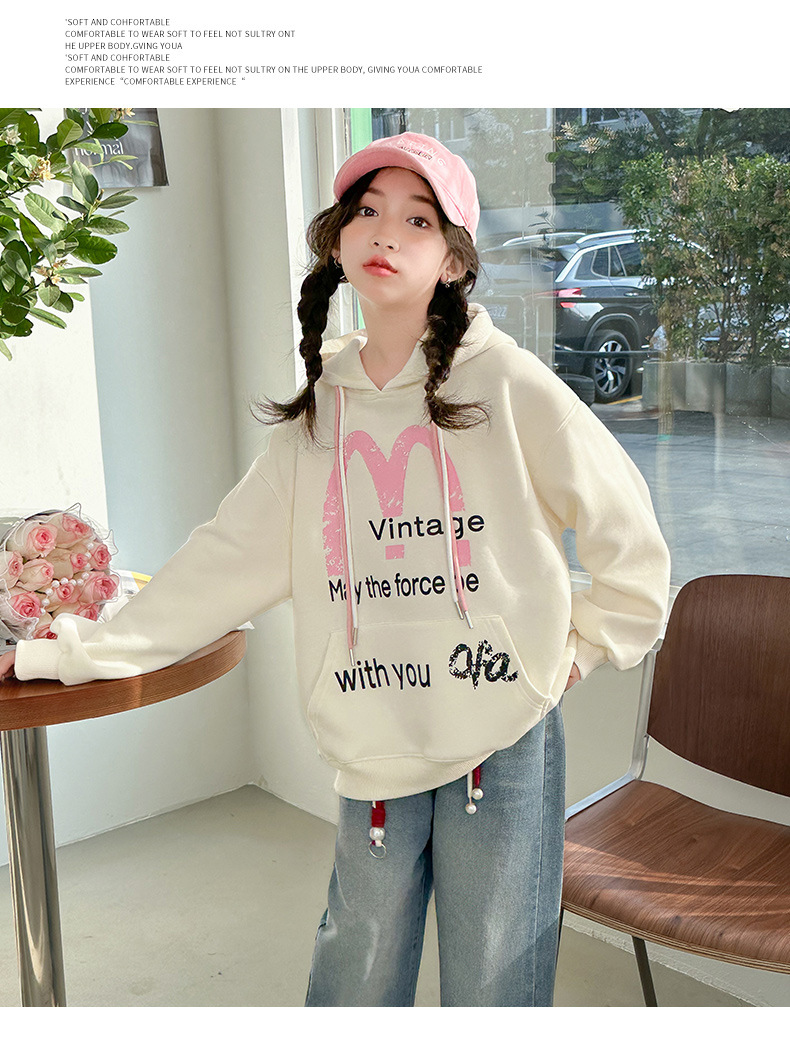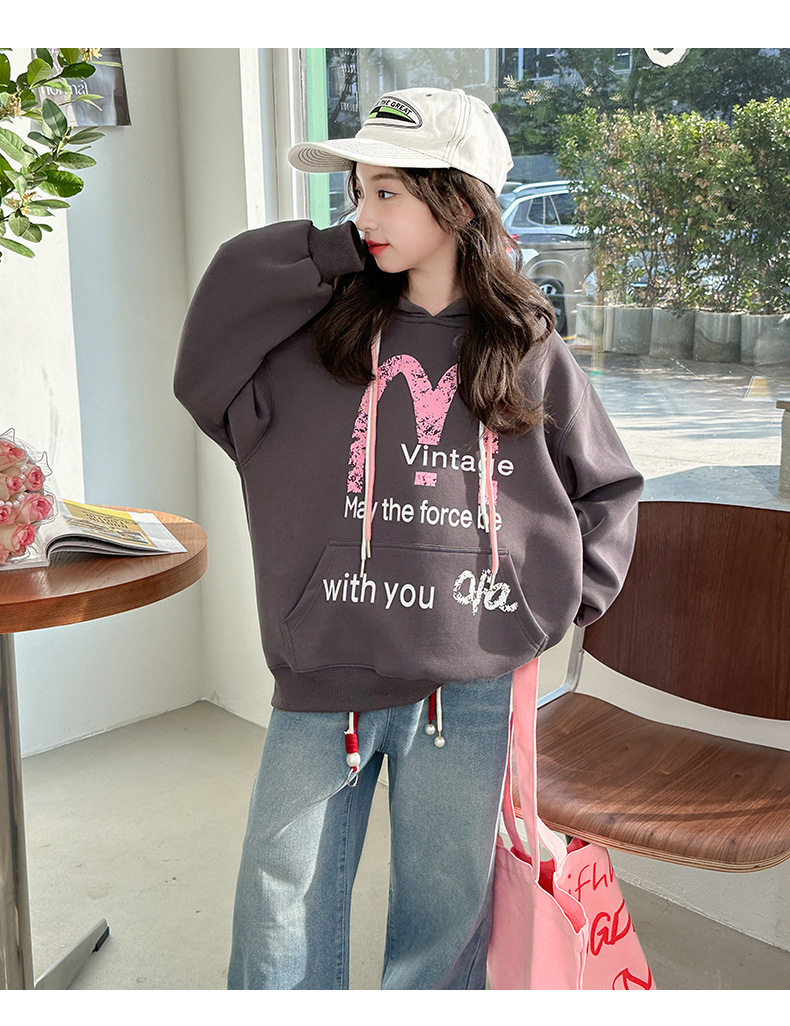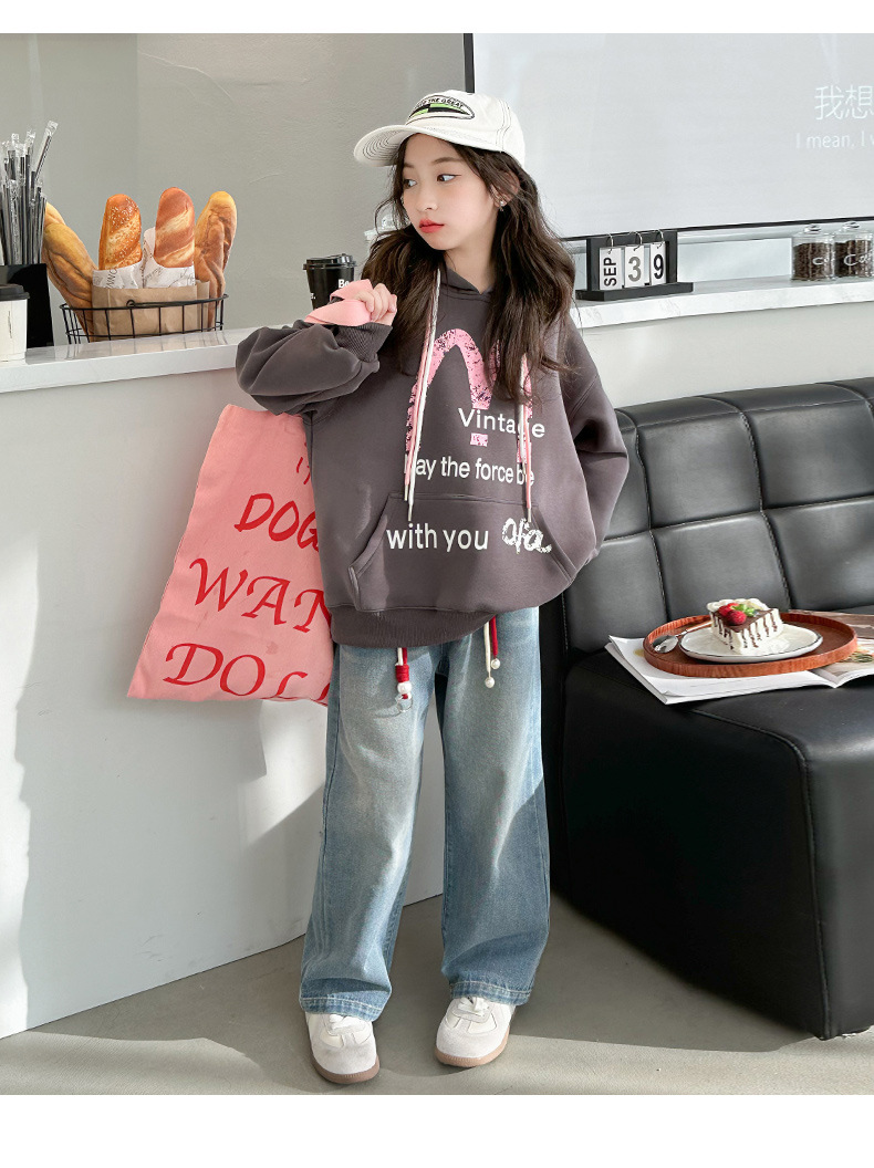 소녀 편지 후드 스웨트 세트 2025 새로운 중 · 대형 어린이 봄 · 가을 청바지 투피스 유행 세트스토어 가기