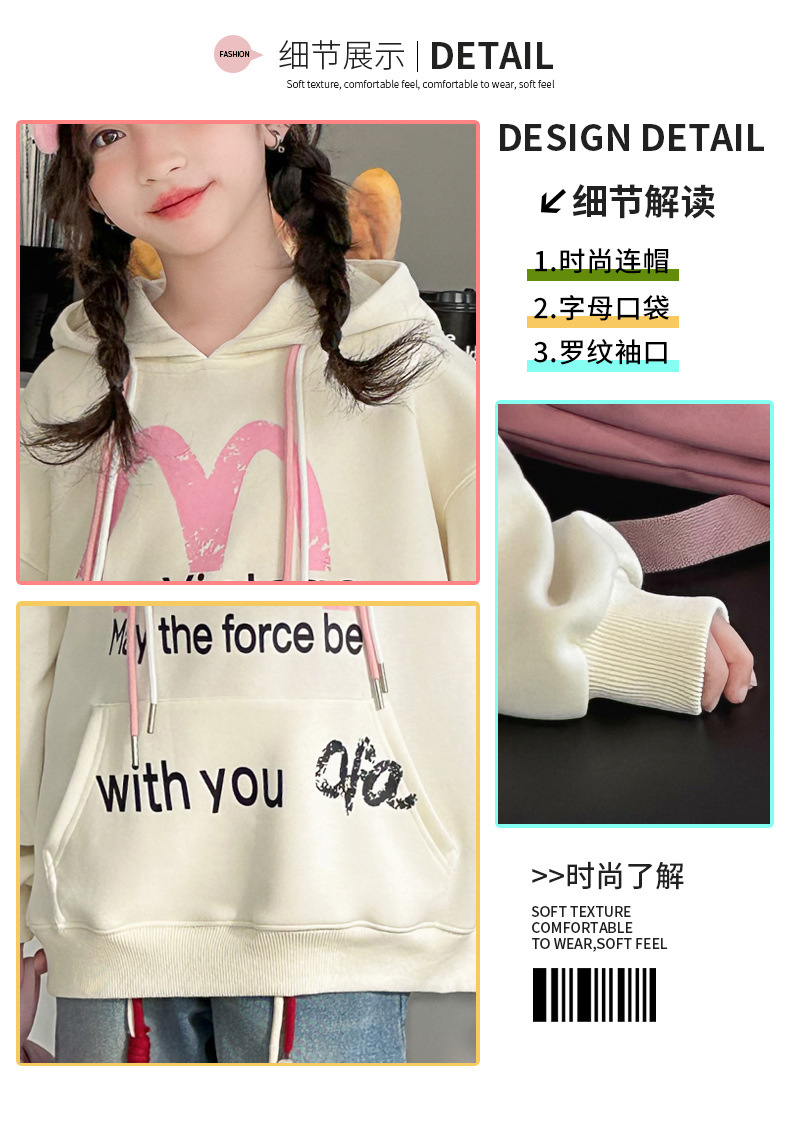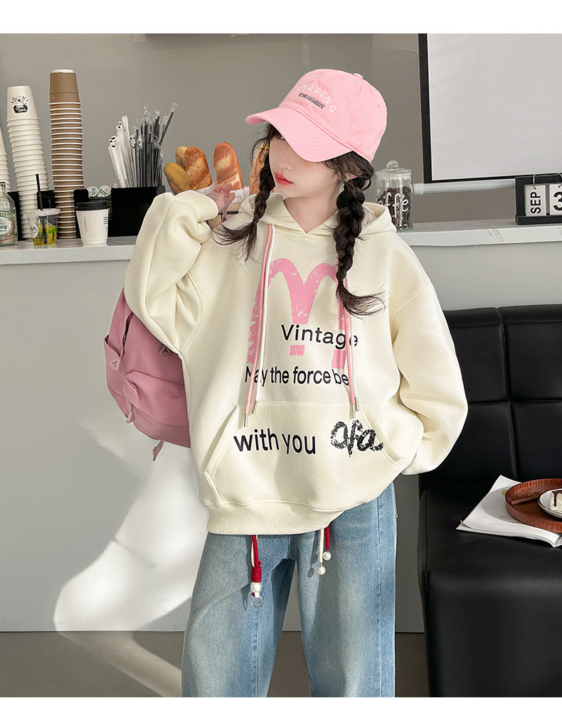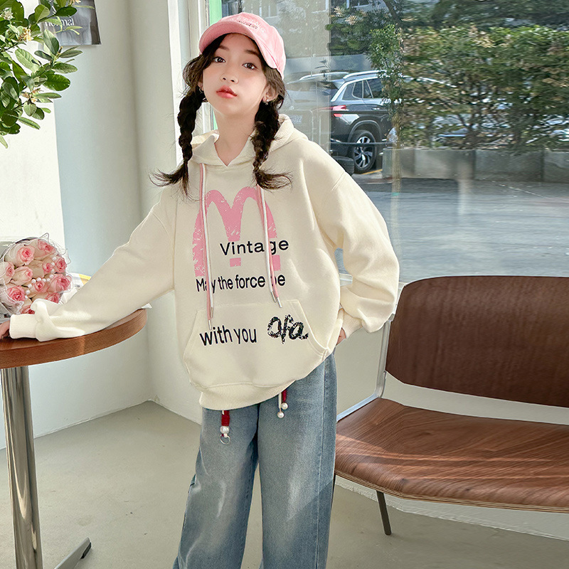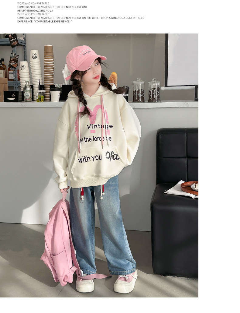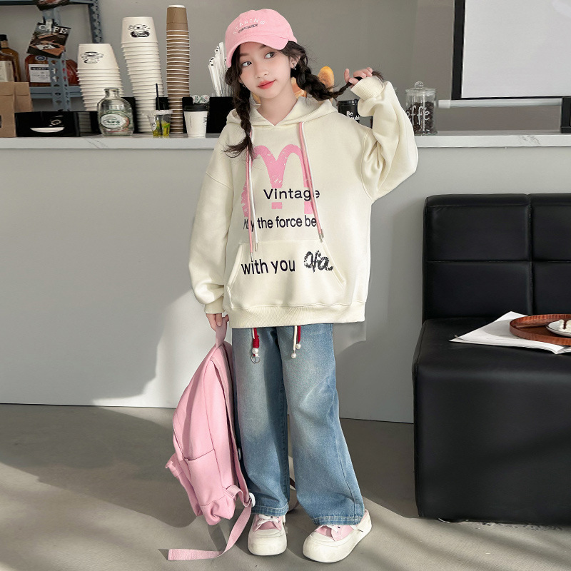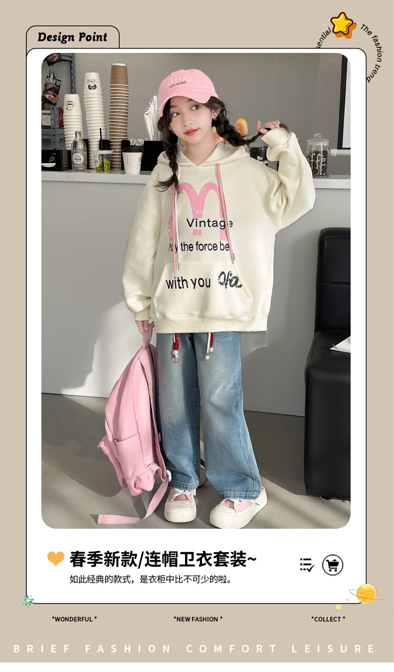 소녀 편지 후드 스웨트 세트 2025 새로운 중 · 대형 어린이 봄 · 가을 청바지 투피스 유행 세트