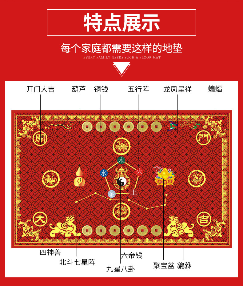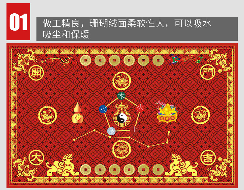 현관 매트, 출입문 발매트, 가정용 행운 매트, 호리병 모양 축복 매트, 축제용 카펫, 미끄럼 방지, 신중국풍스토어 가기