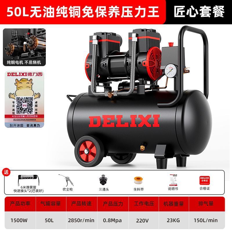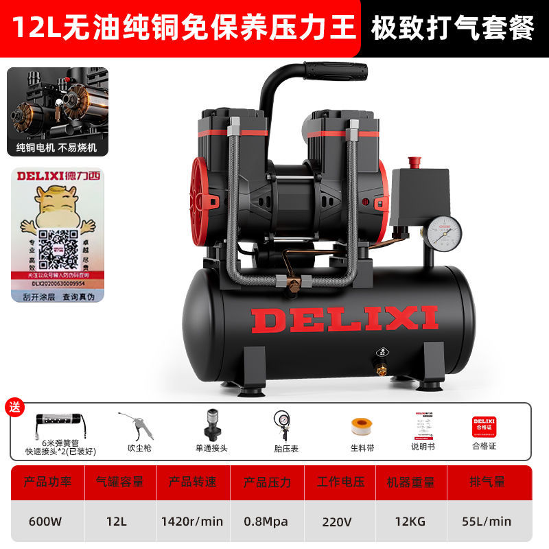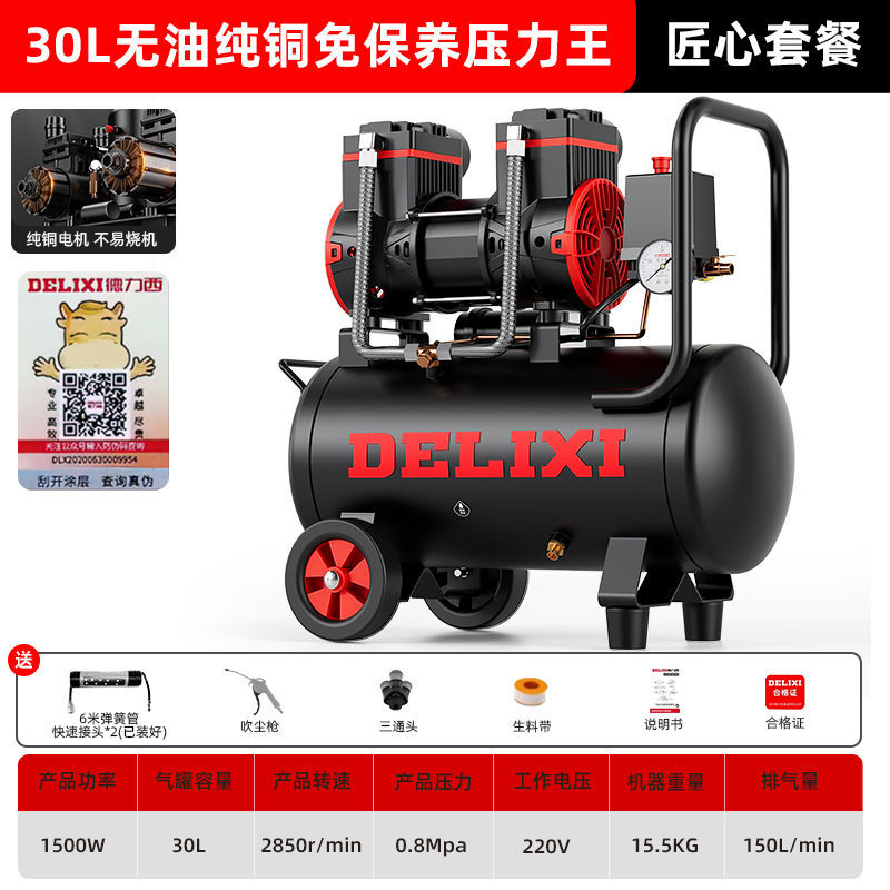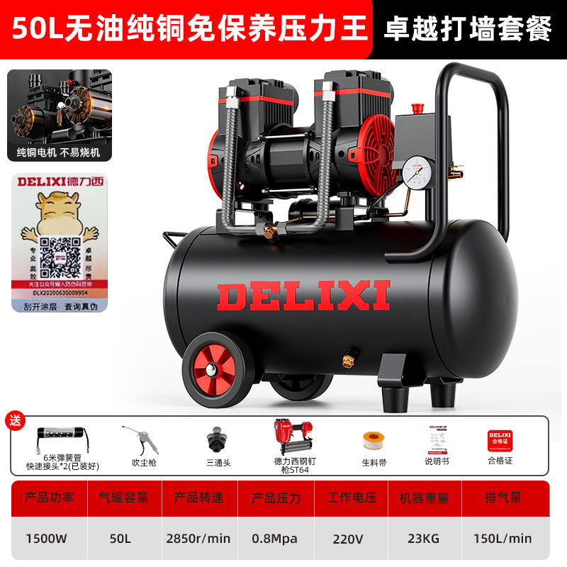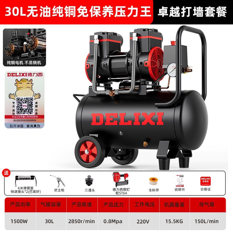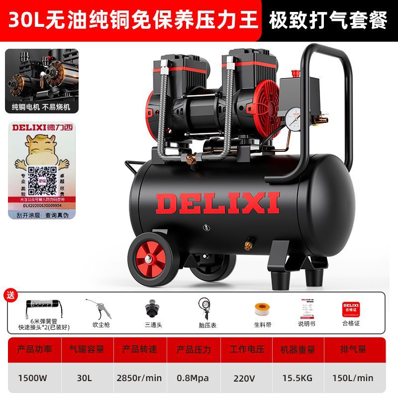 Delixi 기름없는 조용한 220V 공기 압축기 산업 목공 가정용 공기 펌프 작은 휴대용 공기 압축기스토어 가기