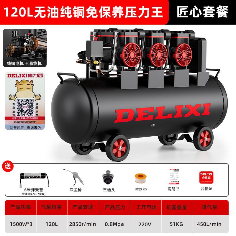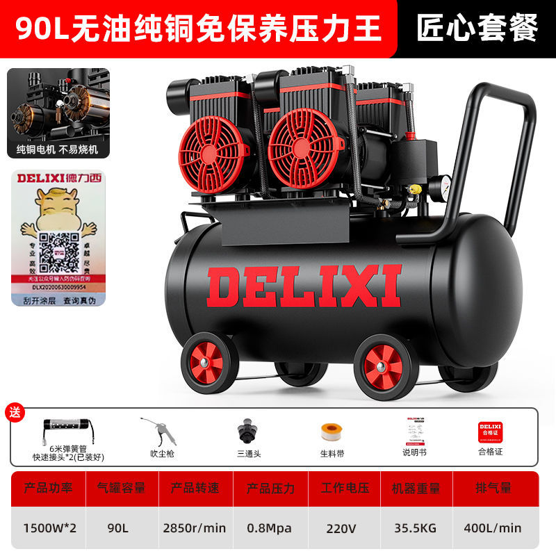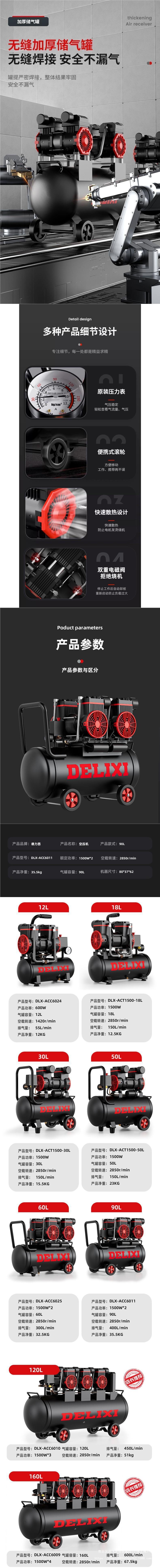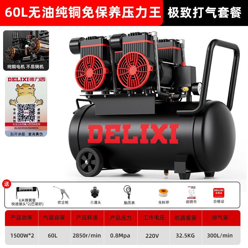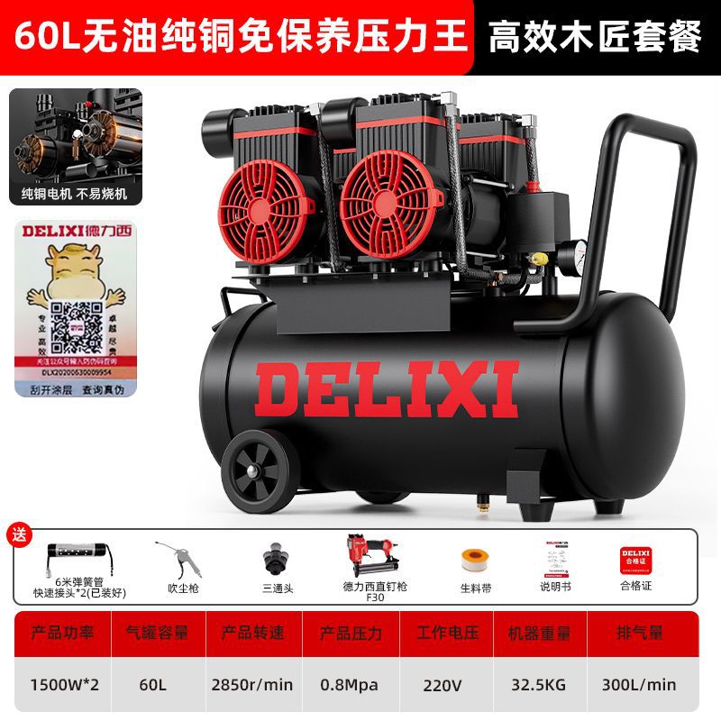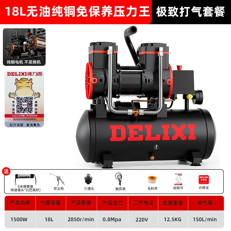 Delixi 기름없는 조용한 220V 공기 압축기 산업 목공 가정용 공기 펌프 작은 휴대용 공기 압축기스토어 가기