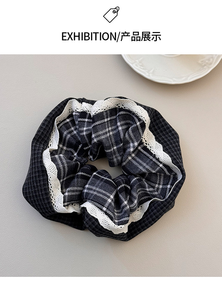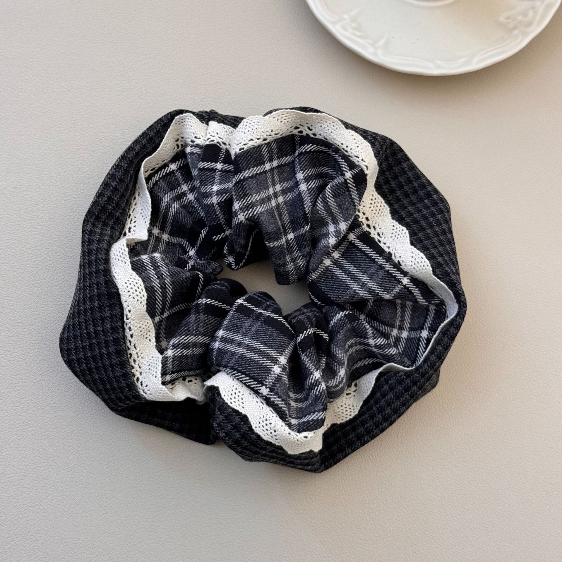 겨울 브라우니~레트로 레이스 체크무늬 머리끈 리본 머리끈 로우포니테일 머리끈 사각 스카프
