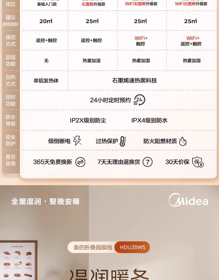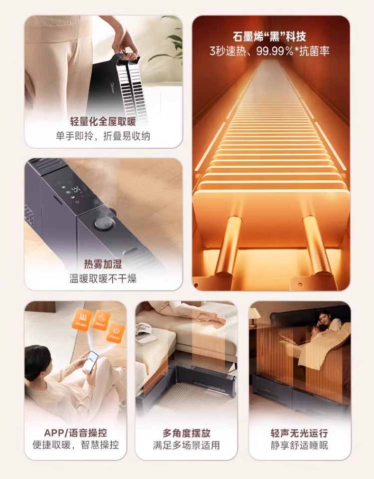 Midea Graphene Skirting 히터 가정용 전기 난방 아티팩트 겨울 에너지 절약 큰 지역 새로운 히터