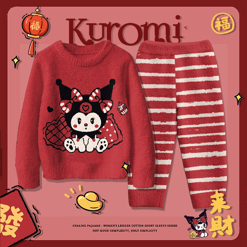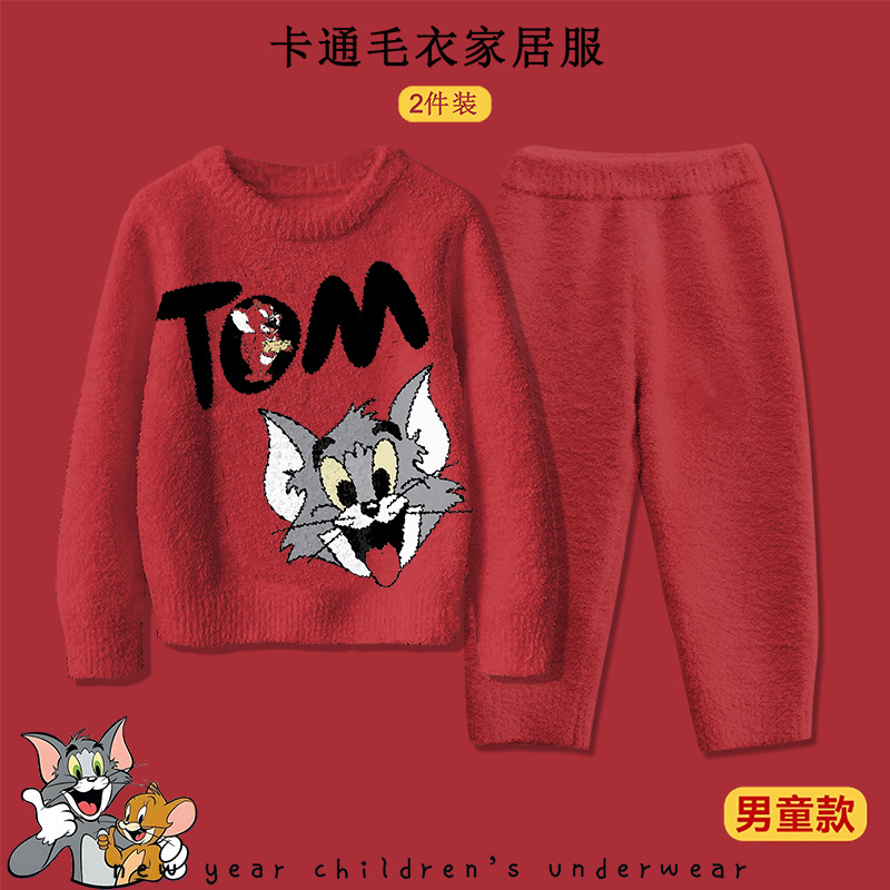 부드러운 어린이 잠옷 어린 소녀의 산호 벨벳 가을과 겨울 두꺼운 붉은 소녀의 하프 벨벳 따뜻한 세트