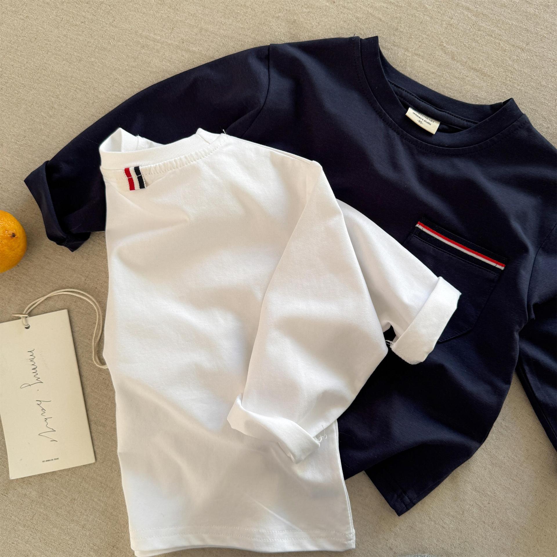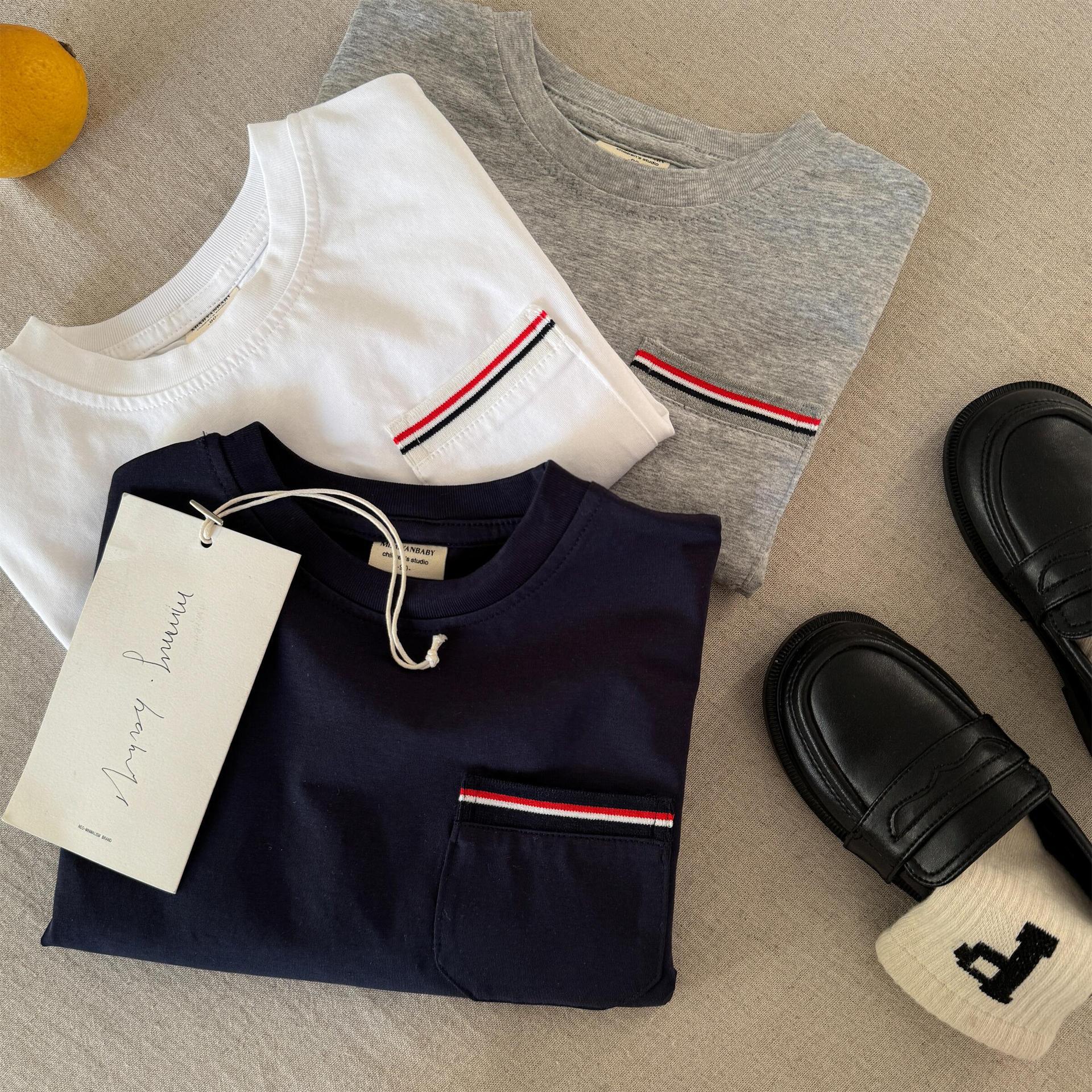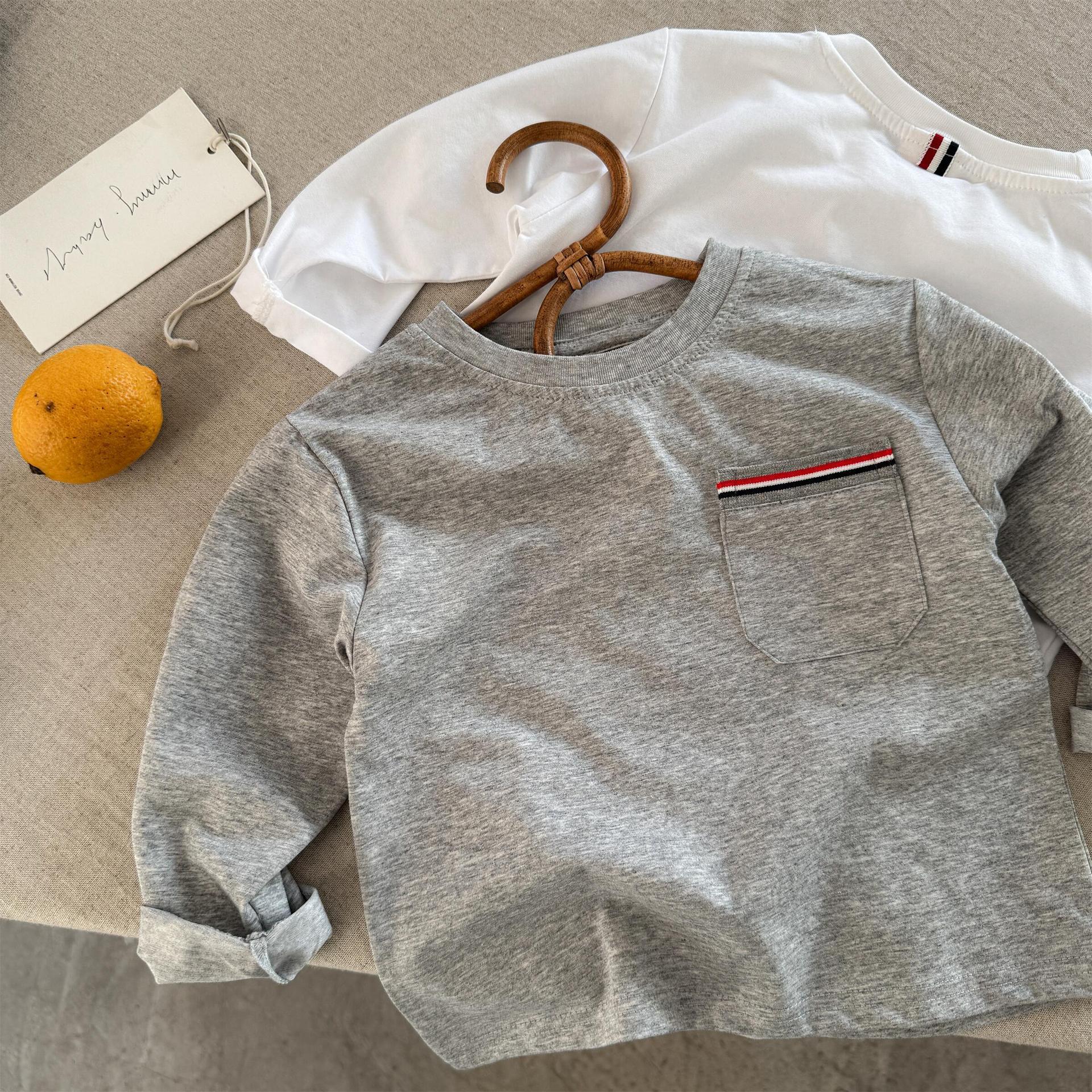 스팟 아동용 티셔츠 2025 봄 신제품 소년 소녀 의류 라이트 플레이트 포켓 긴팔 T 베이비 다용도 단순 바닥스토어 가기