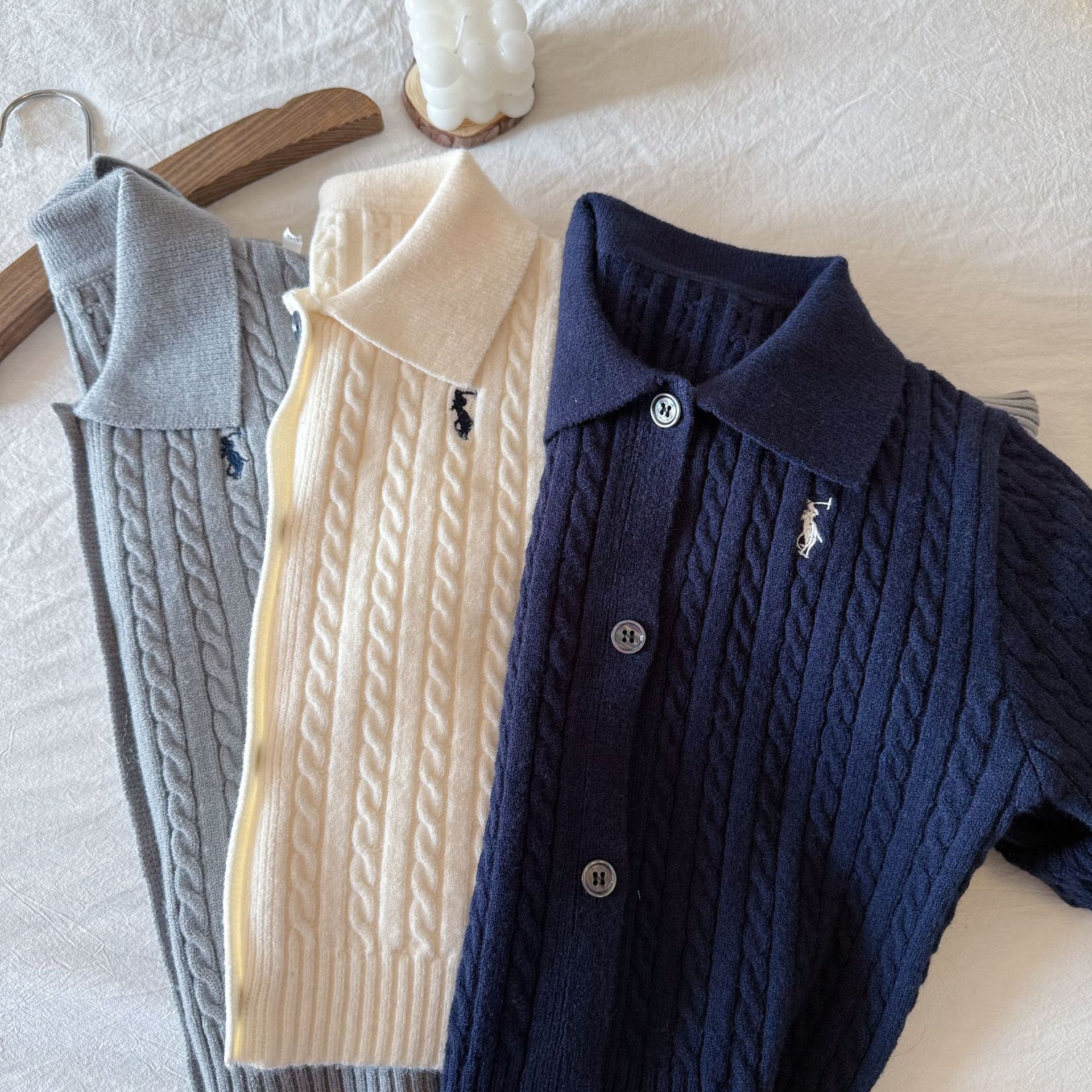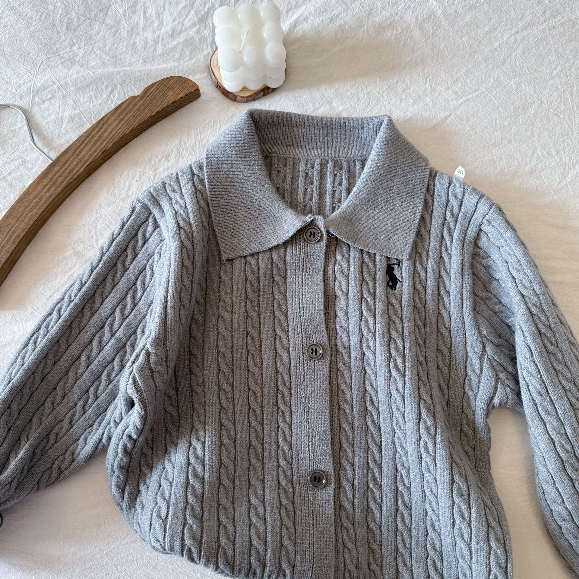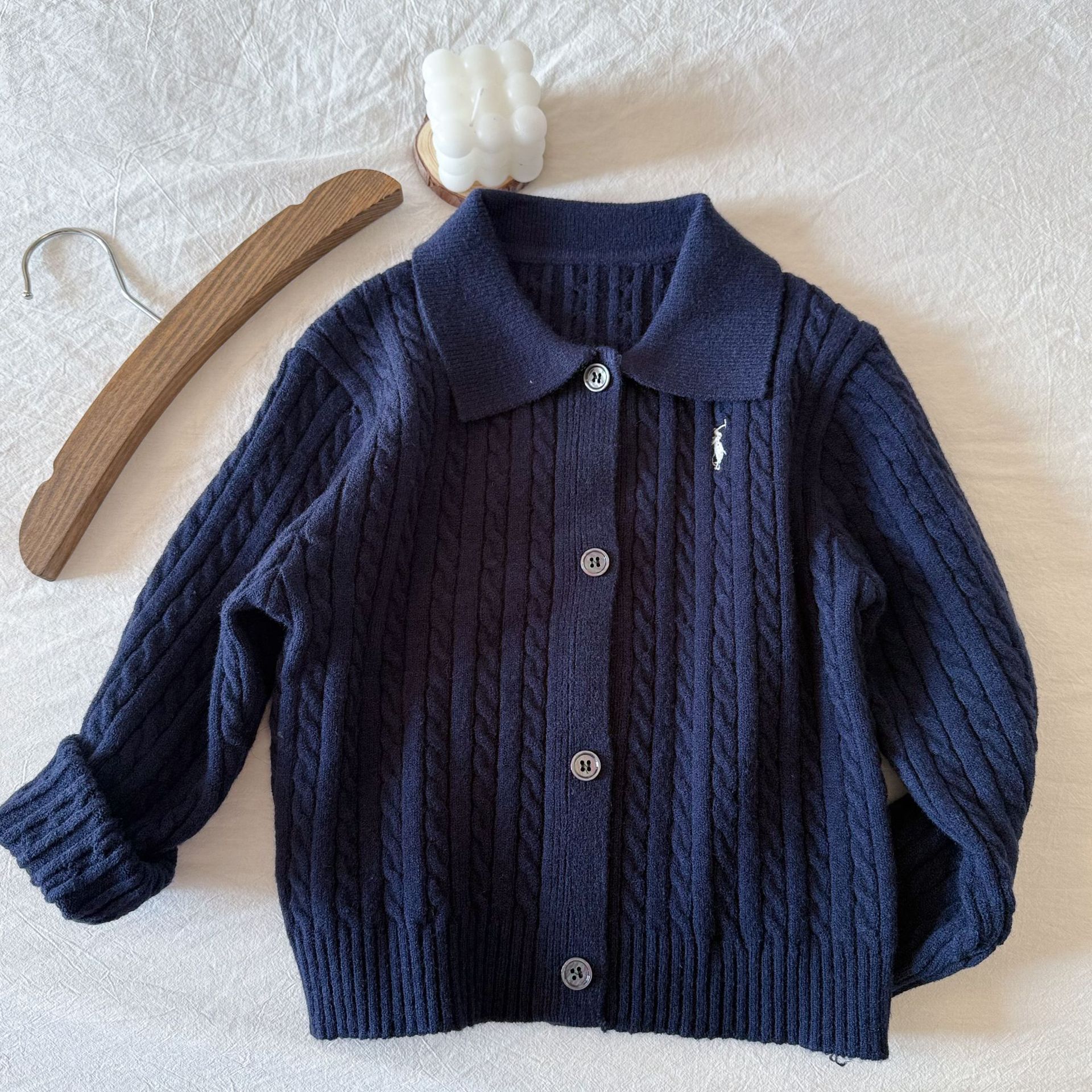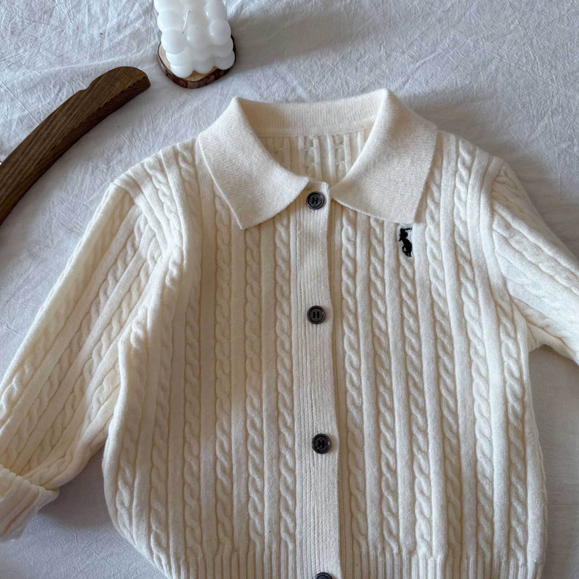 어린이 스웨터 2025 봄 새 도착 소년 소녀를위한 자수 립 니트웨어 아기 트위스트 카디건 신년 옷