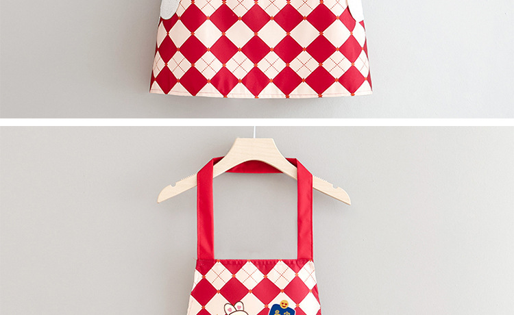 • 손 닦는 실 패턴 체크무늬 밑단 레드 포켓 행복감 + 소매
