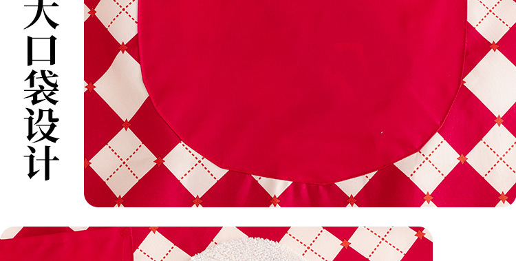 • 손 닦는 실 패턴, 체크 무늬 바닥, 행복이 가득한 빨간 주머니