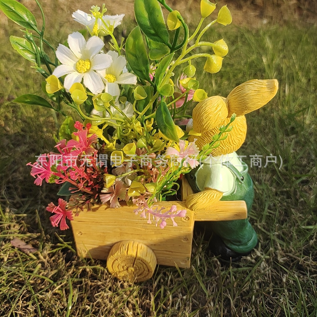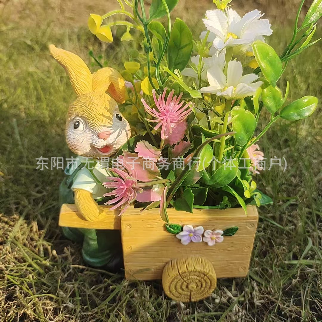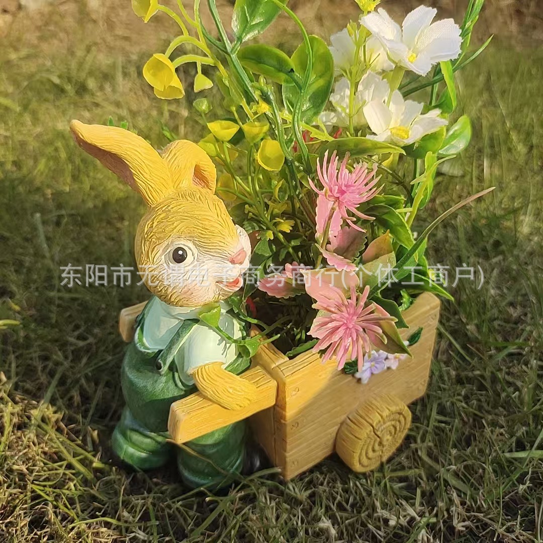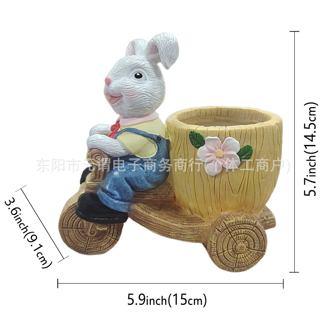창조적 인 새로운 부활절 토끼 트롤리 꽃 냄비 발코니 장식 장식품 사이클링 토끼 육체 꽃 냄비 수지
