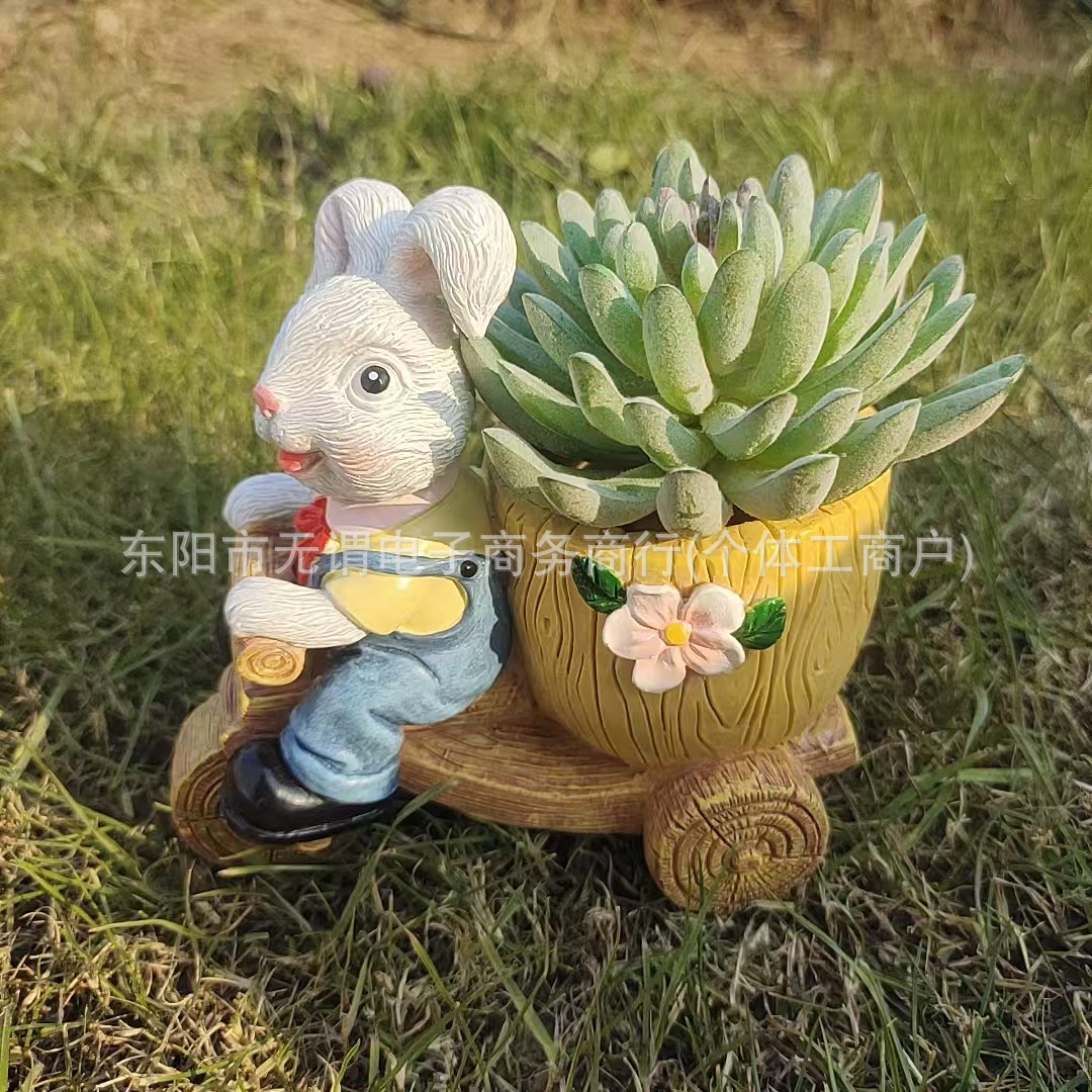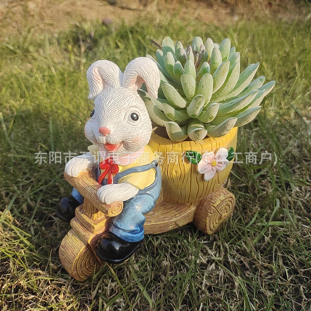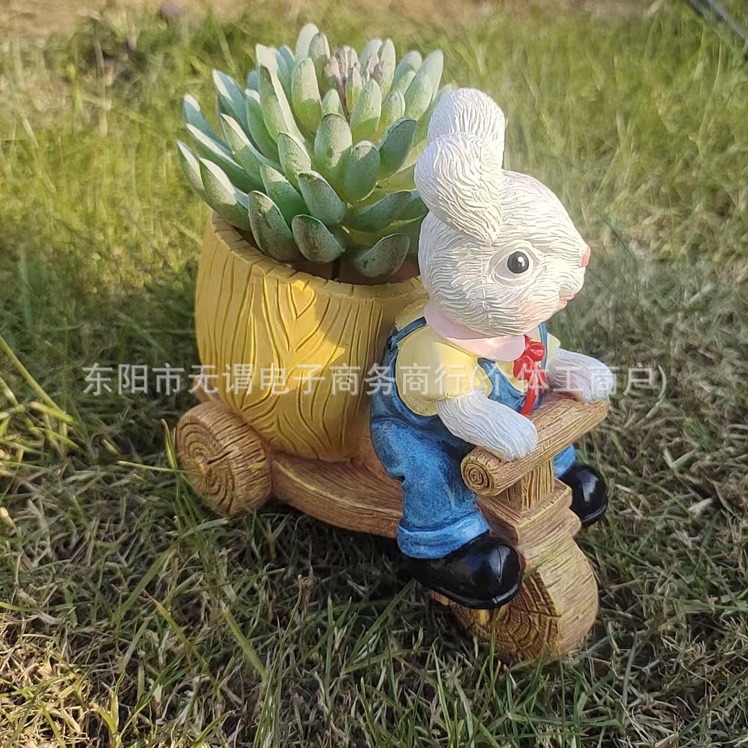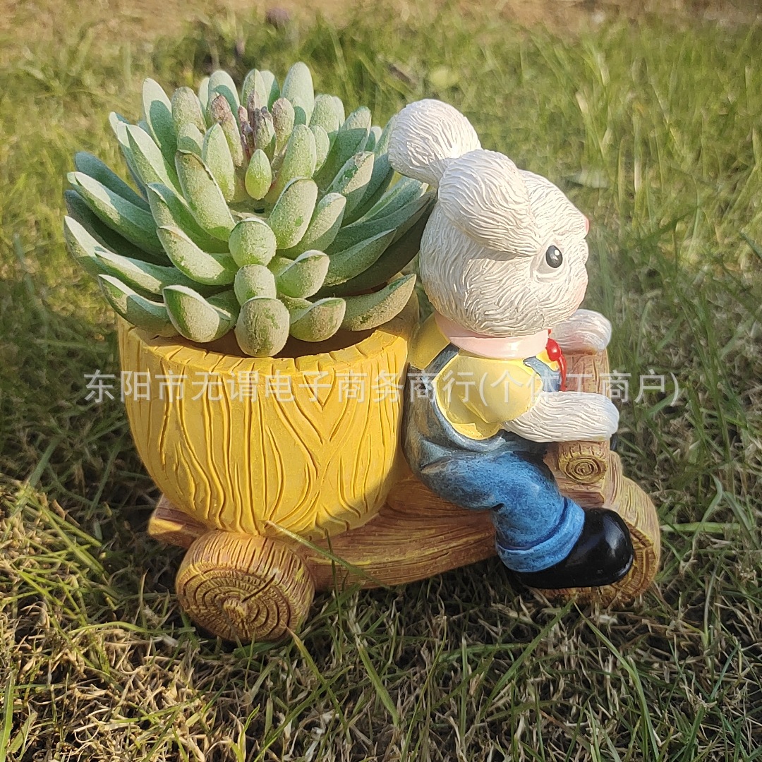창조적 인 새로운 부활절 토끼 트롤리 꽃 냄비 발코니 장식 장식품 사이클링 토끼 육체 꽃 냄비 수지