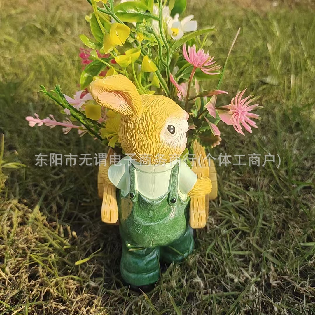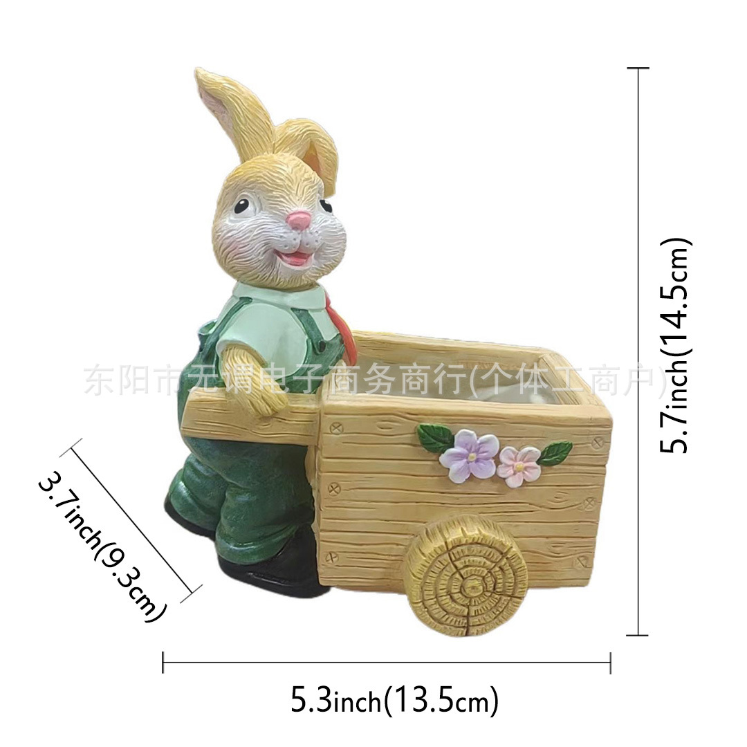 창조적 인 새로운 부활절 토끼 트롤리 꽃 냄비 발코니 장식 장식품 사이클링 토끼 육체 꽃 냄비 수지스토어 가기