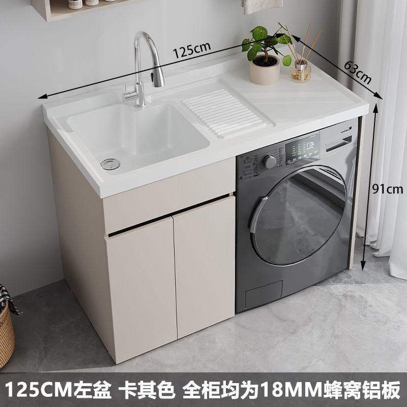 • 125 왼쪽 흰색 세면대 카키색 캐비닛 + 18MM 벌집형 알루미늄