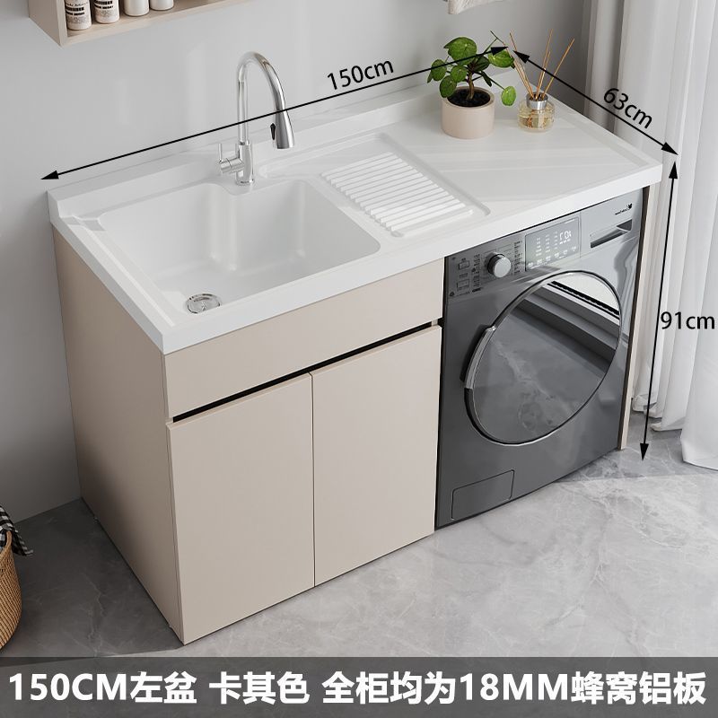 • 150 왼쪽 흰색 세면대 카키색 캐비닛 + 18MM 벌집형 알루미늄