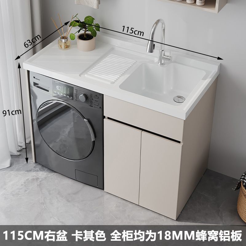 • 115 오른쪽 흰색 세면대 카키색 캐비닛 + 18MM 벌집형 알루미늄