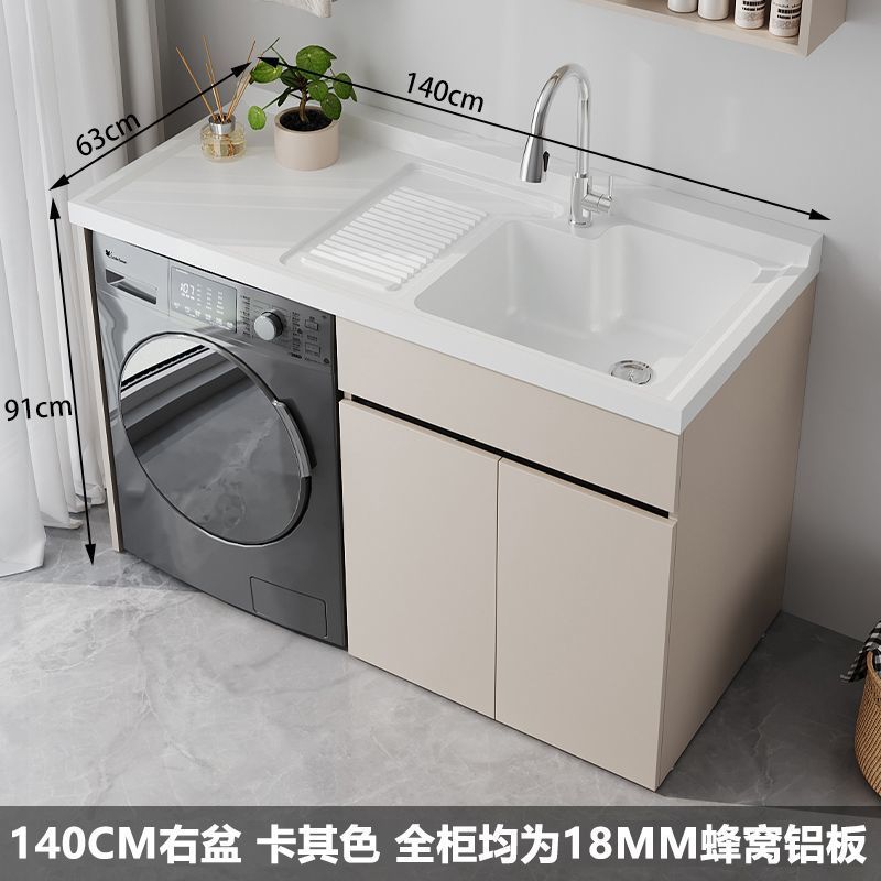 • 140 오른쪽 흰색 세면대 카키색 캐비닛 + 18MM 벌집형 알루미늄
