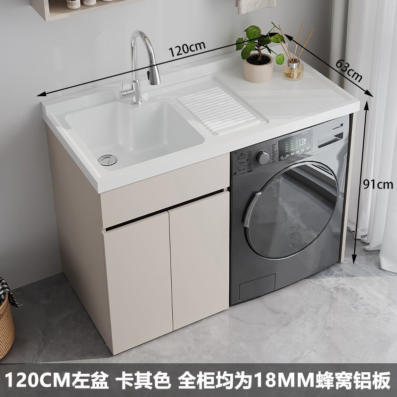 • 120 왼쪽 흰색 세면대 카키색 캐비닛 + 18MM 벌집형 알루미늄