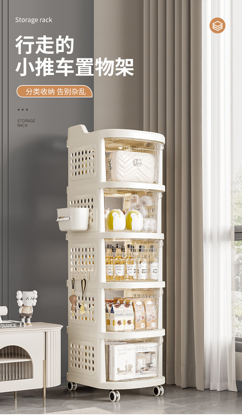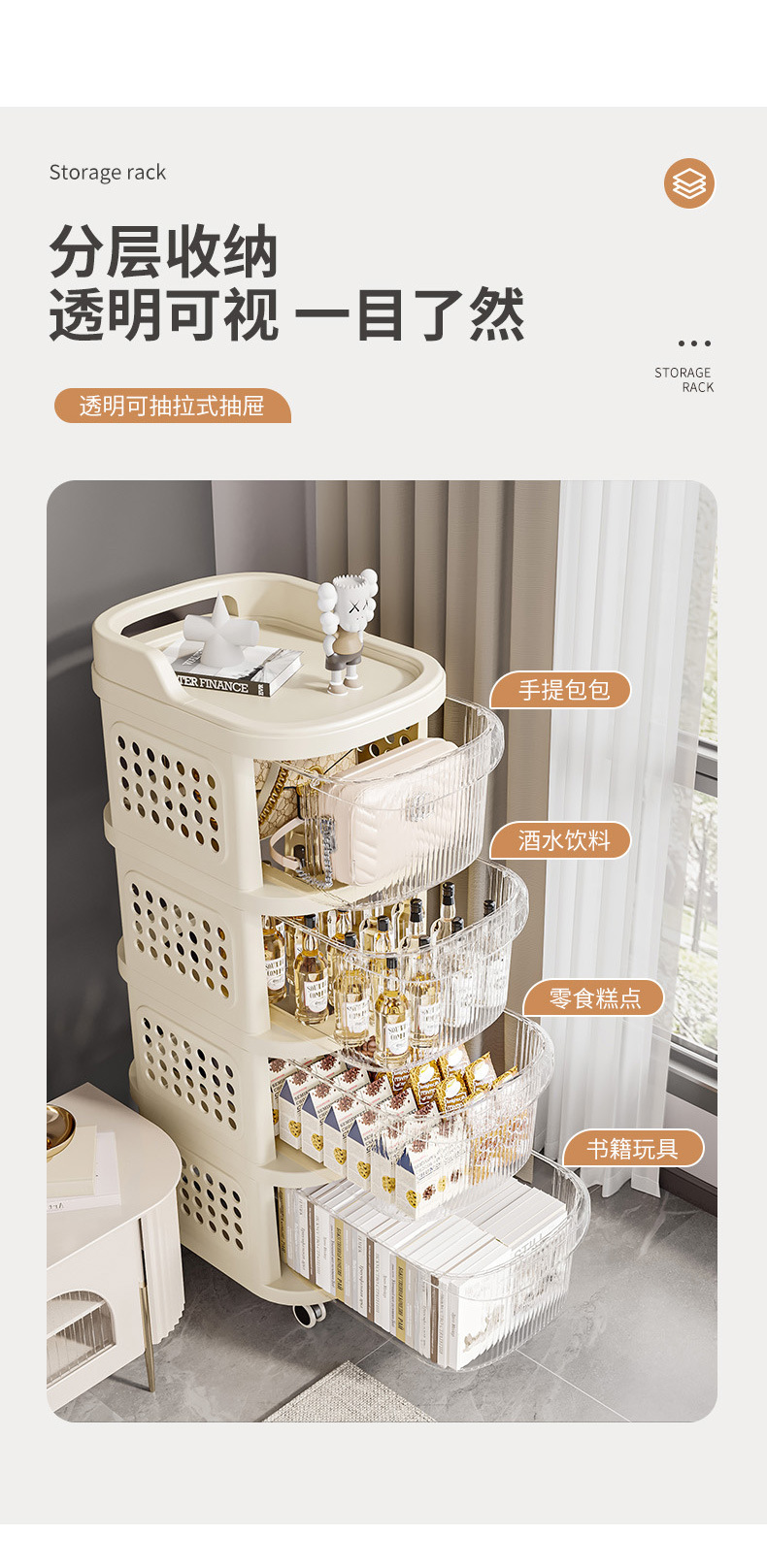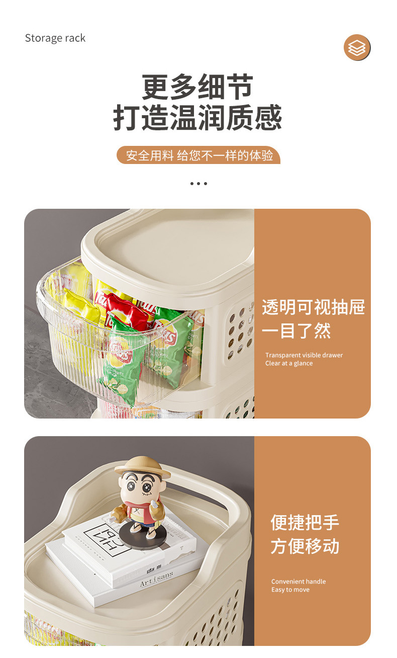 小推车零食置物架 婴儿用品分层抽屉储物收纳柜子 家用客厅玩具收纳箱 置物架 收纳柜 收纳箱