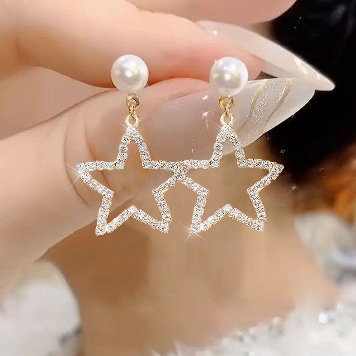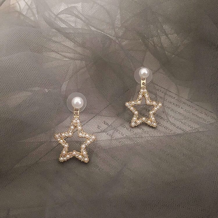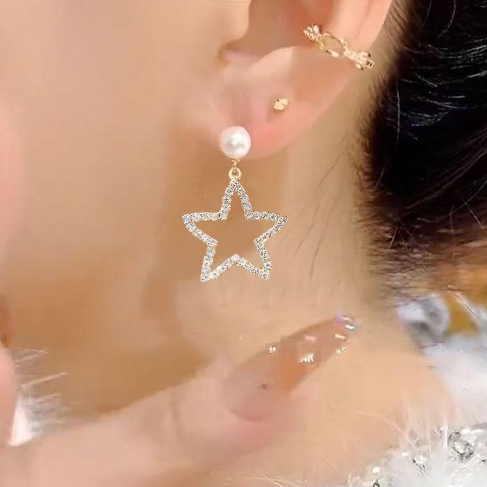 한국 스타일 중공 오점 별 진주 귀걸이 여성 빛 럭셔리 우아한 간단한 귀걸이 올매치 패션 귀걸이 액세서리스토어 가기