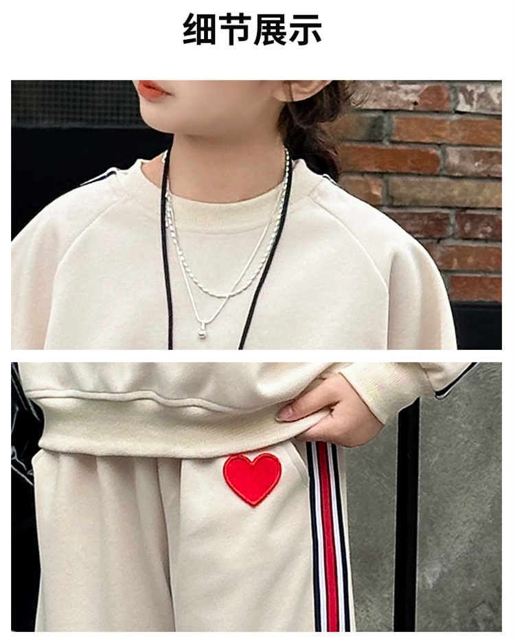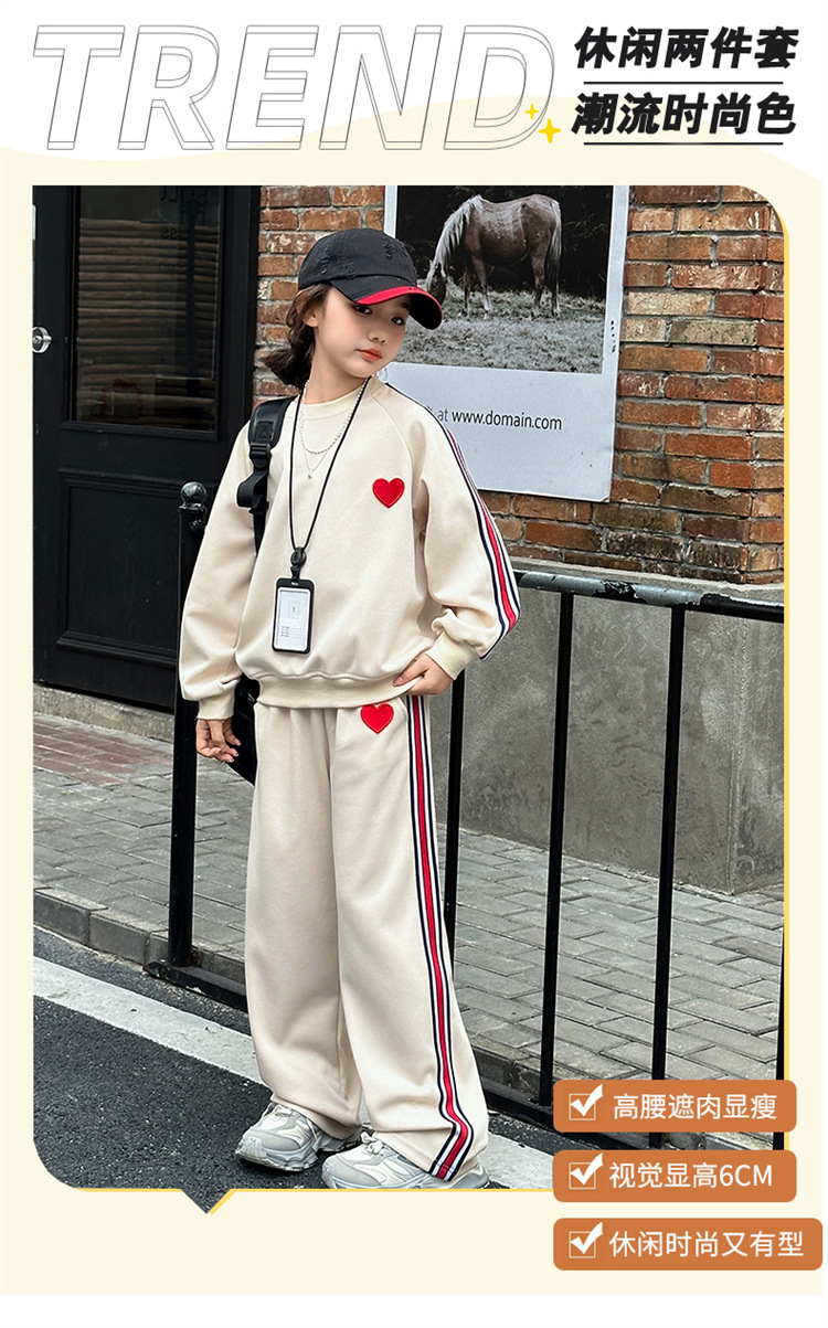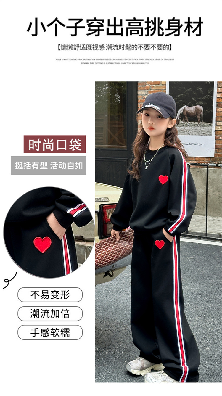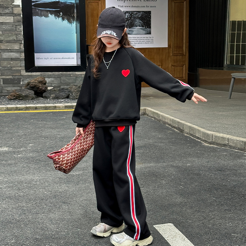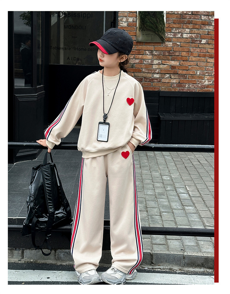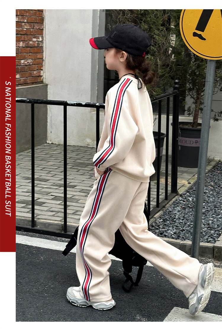 소녀의 봄철 스포츠 세트 2025 새로운 서양식 소녀의 봄 캐주얼 땀 큰 어린이 넓은 다리 바지 투피스 세트스토어 가기