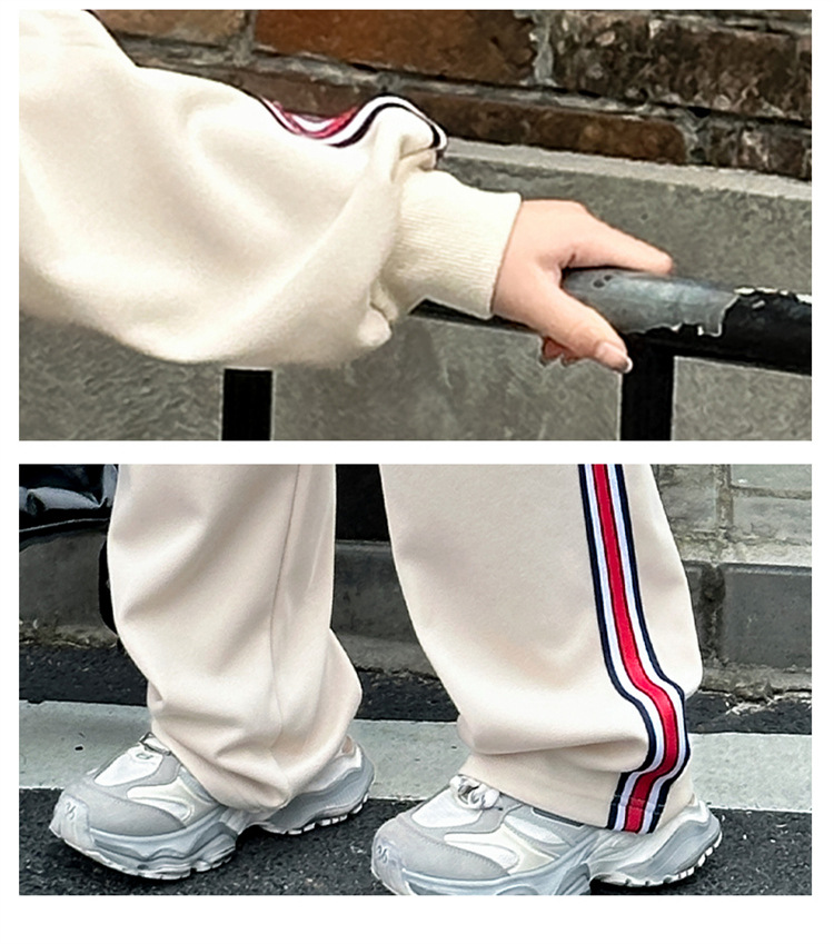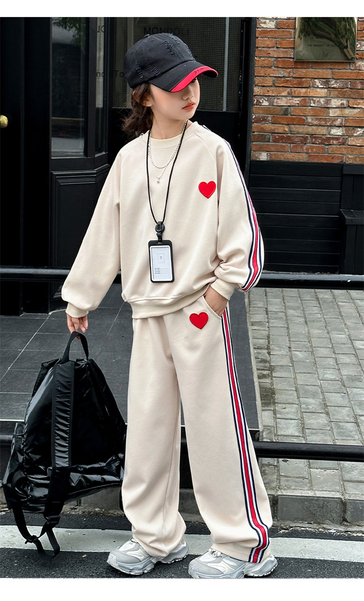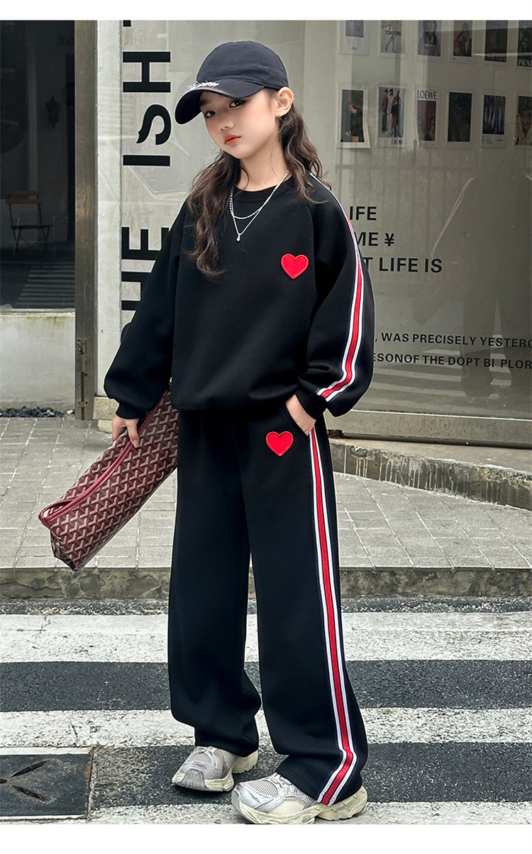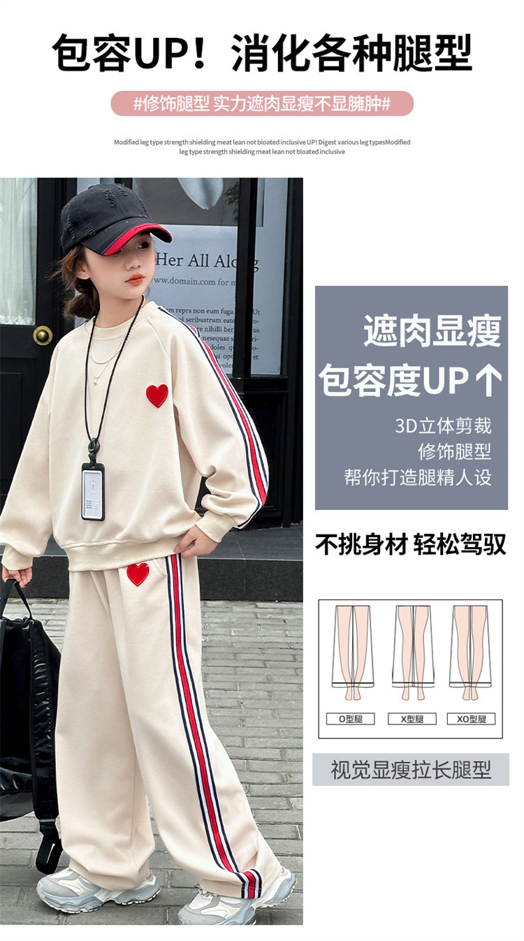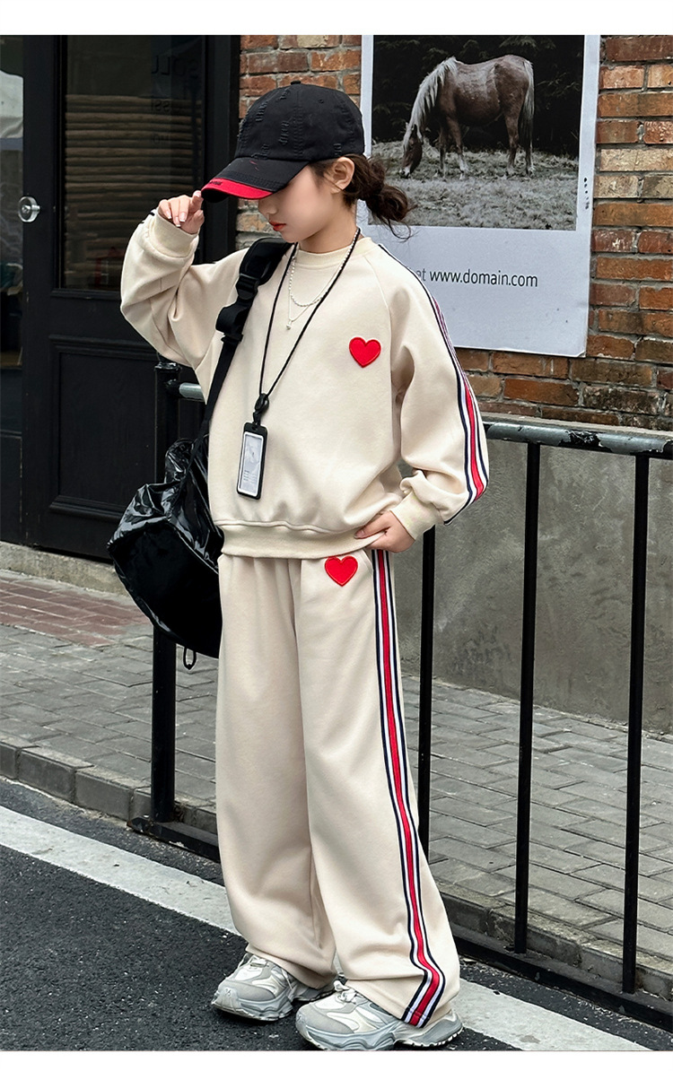 소녀의 봄철 스포츠 세트 2025 새로운 서양식 소녀의 봄 캐주얼 땀 큰 어린이 넓은 다리 바지 투피스 세트스토어 가기