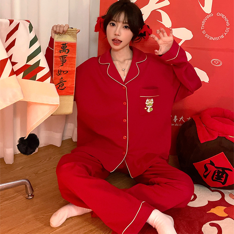 소녀 잠옷 봄과 가을 2025 새로운 중학교 카피 발라 어린이 순면 가을과 겨울 여성을위한 큰 어린이 가정 옷스토어 가기
