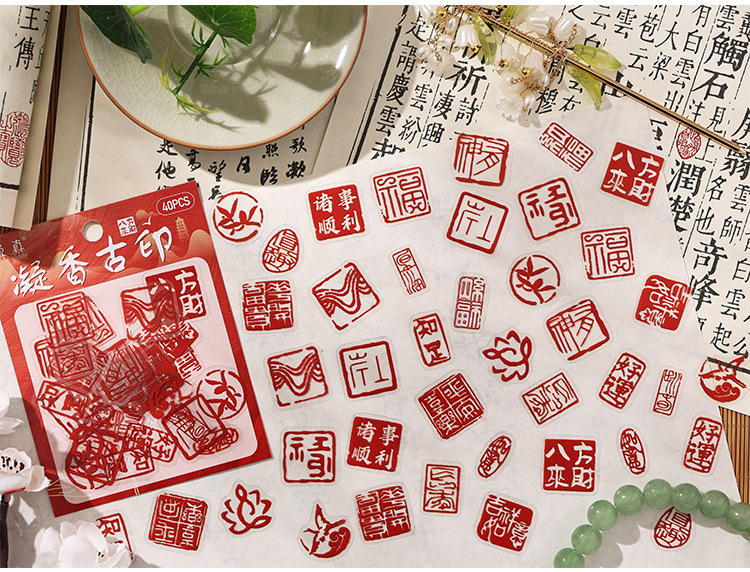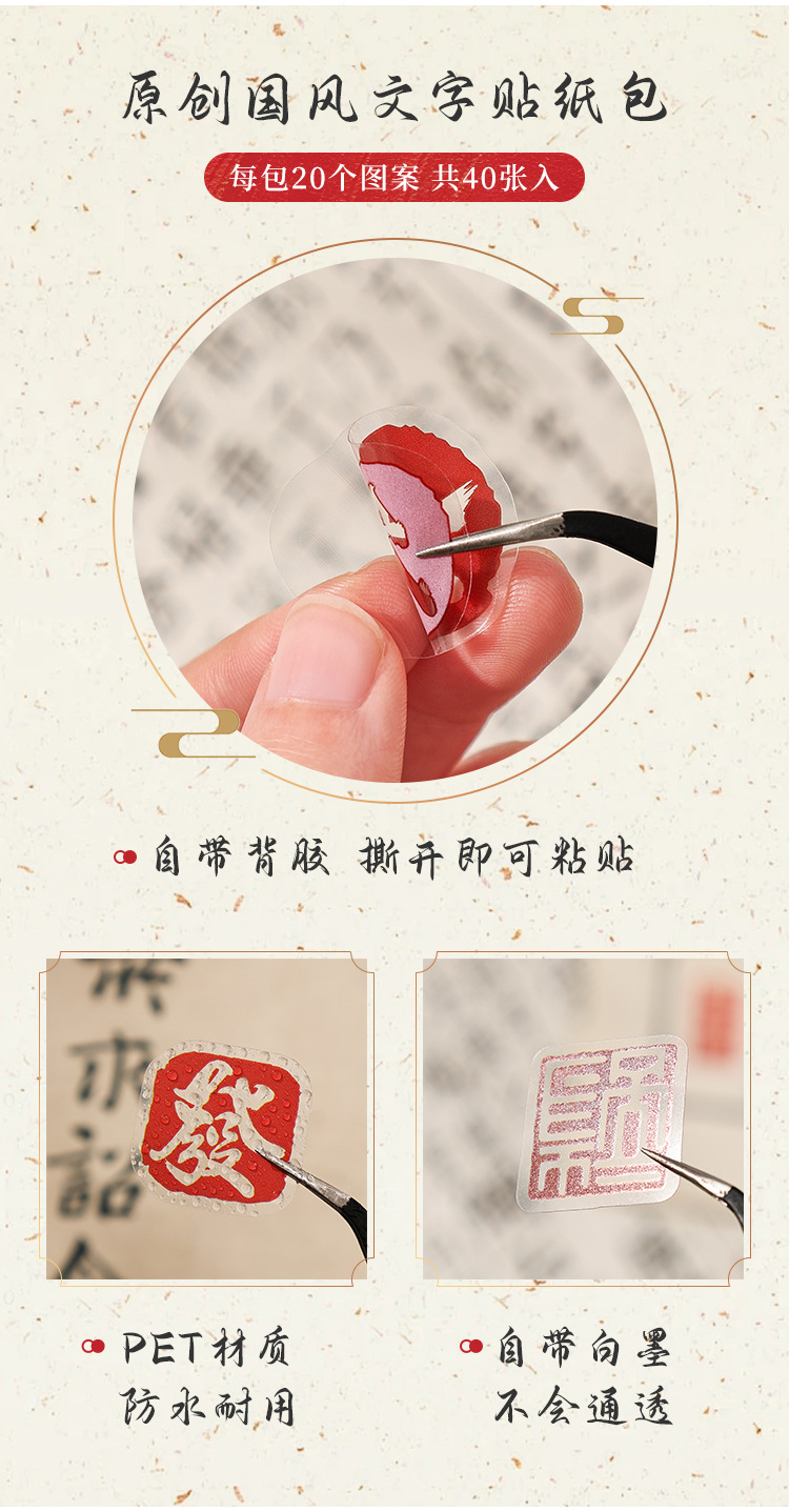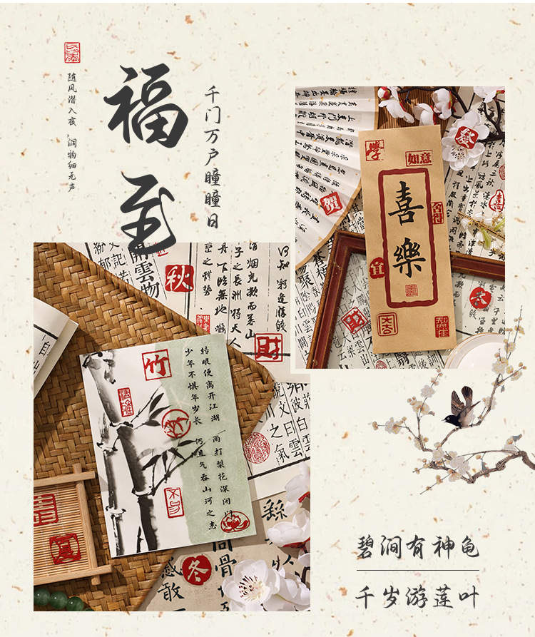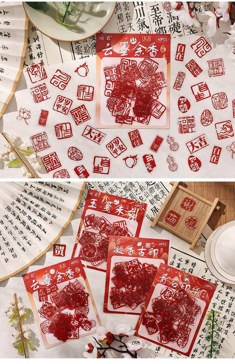 Yuezhen 한모 레거시 국가 스타일 텍스트 핸드북 스티커 팩 새해 축복 창조적 인 스티커 애완 동물 핸드북 스티커