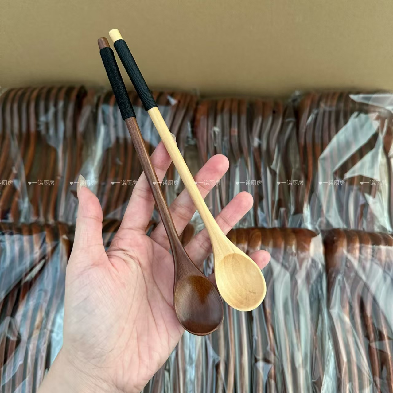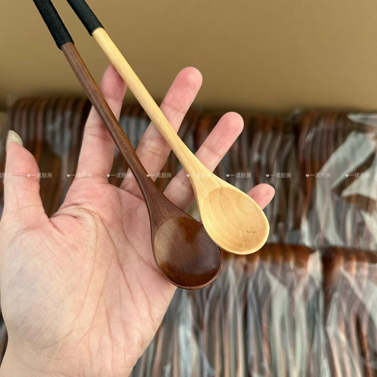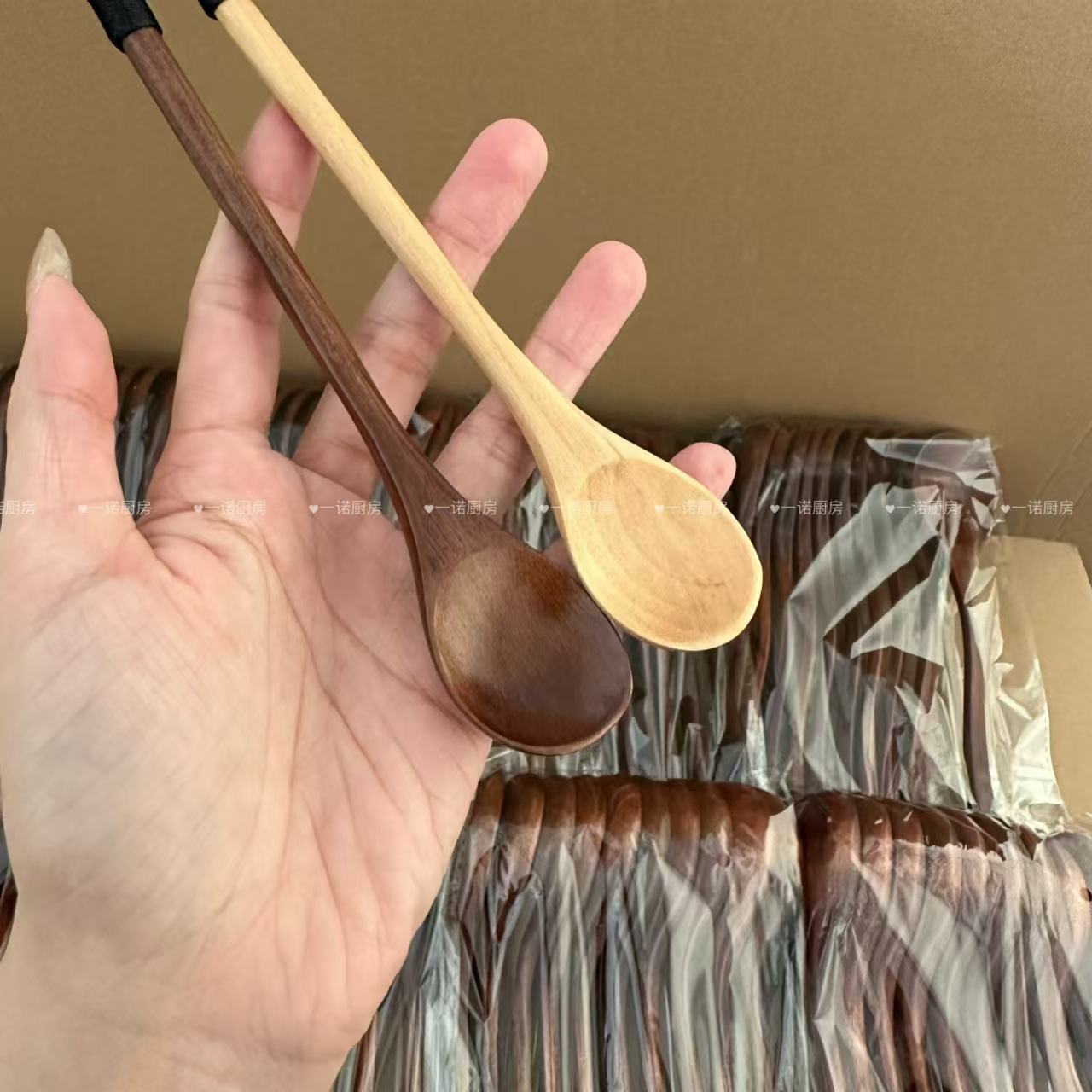 Yino Kitchen Honey Spoon 일본 수제 솔리드 우드 수프 스푼 래커없는 긴 손잡이 혼합 스푼 커피 스푼 작은 나무 숟가락
