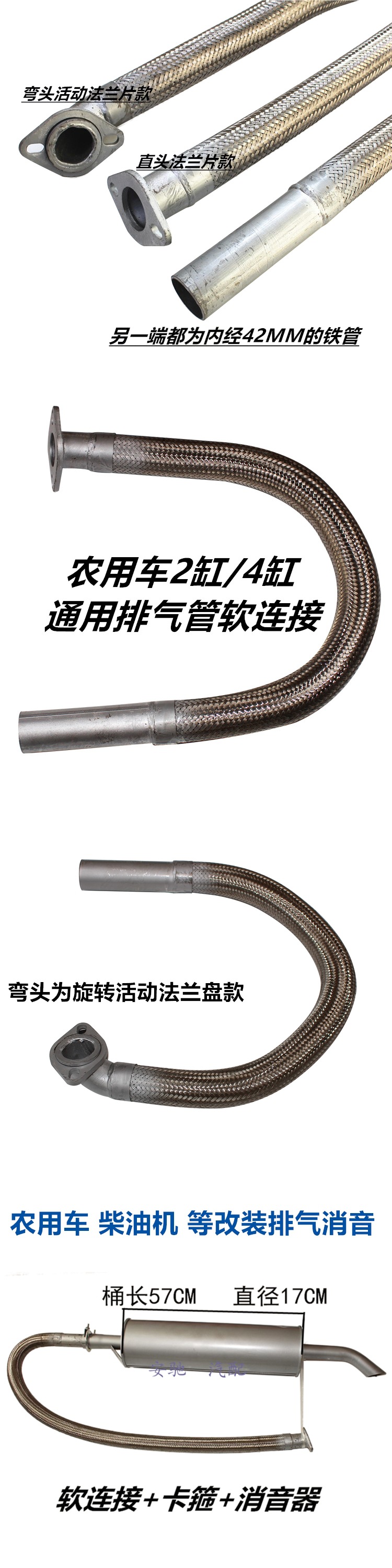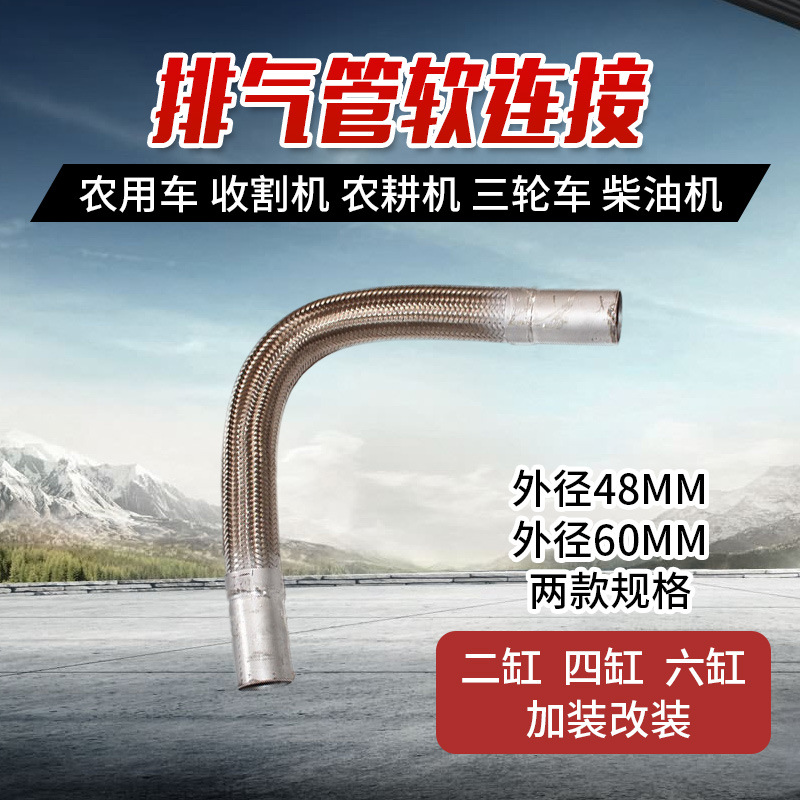 농업 차량 배기 소프트 연결 머플러 호스 충격 흡수 수정 2 기통 4 기통 범용 3 륜 5 륜 배기 파이프