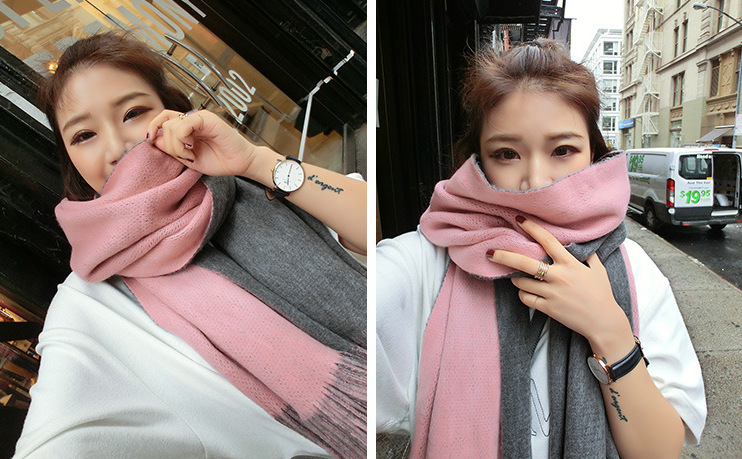 새로운 컬러 매칭 술 양면 따뜻한 두꺼운 스카프 한국 가을과 겨울 애호가 학생 스카프 목도리 도매