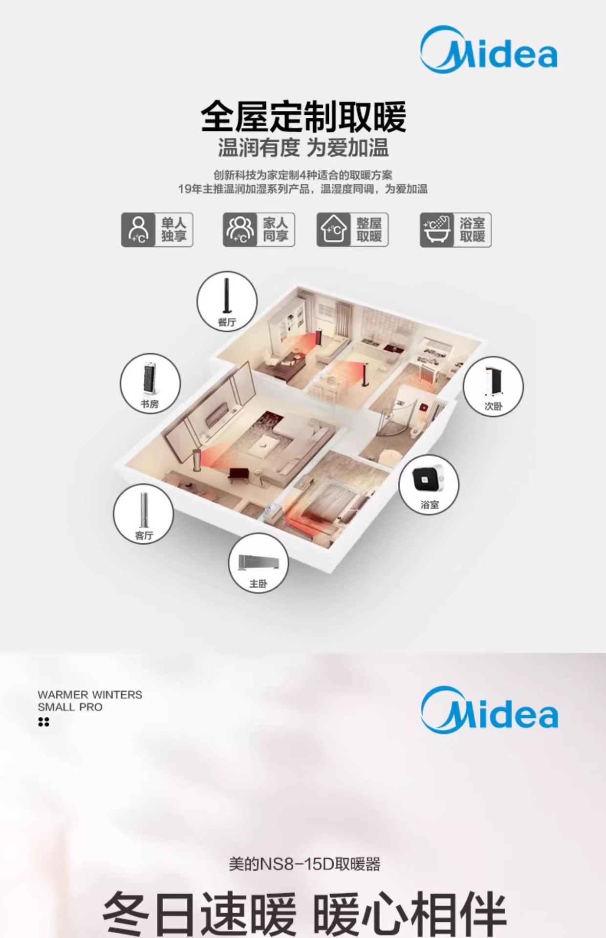 Midea 히터 작은 태양 전기 히터 가정용 에너지 절약 작은 사무실 히터 먼 적외선 빠른 난방스토어 가기